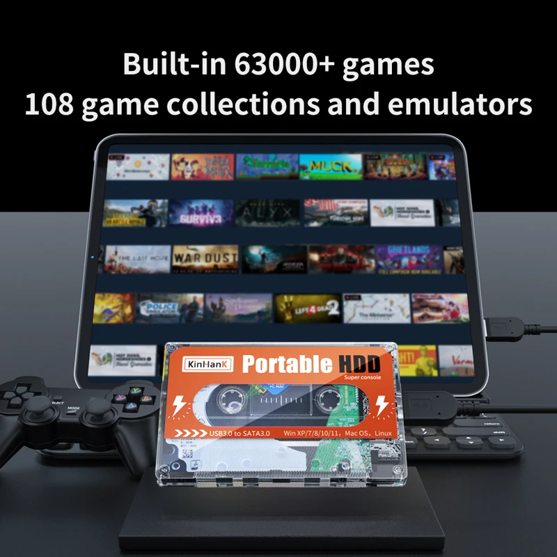 Жесткий диск большой емкости, мульти-совместимость. Совместимость с операционной системой Windows/Mac Os/Linux, подходит для ПК, ноутбуков, ПК и т. д. позволяет превратить компьютер в ретро-игровую консоль, подключи и играй, никаких громоздких операций!