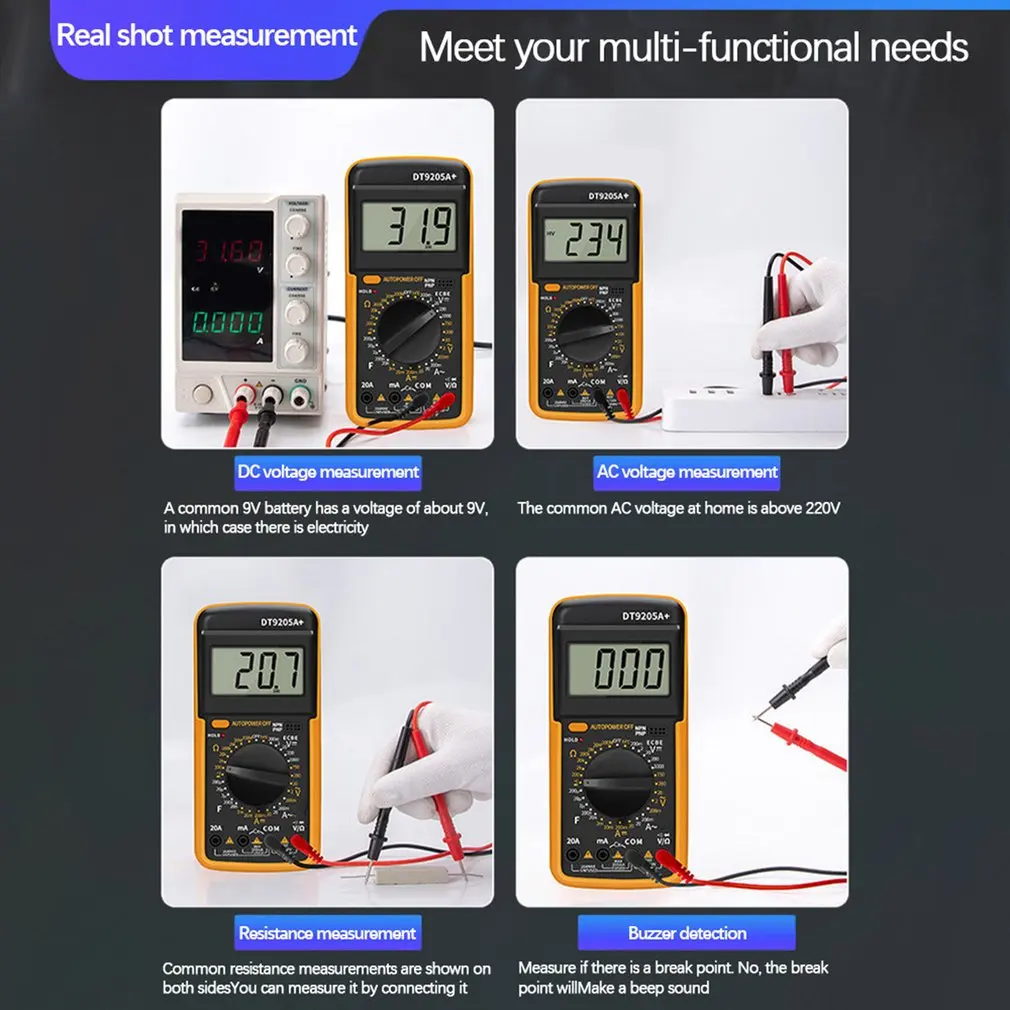 DT9205A Digital Multimeter DC Current And Voltage Instruments Smart Digital Display Universal Meter With Backlight