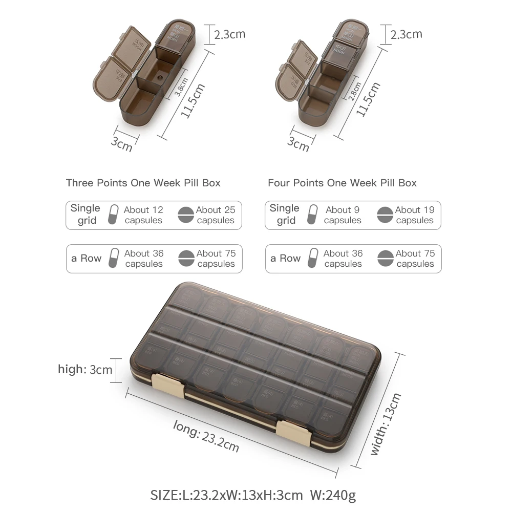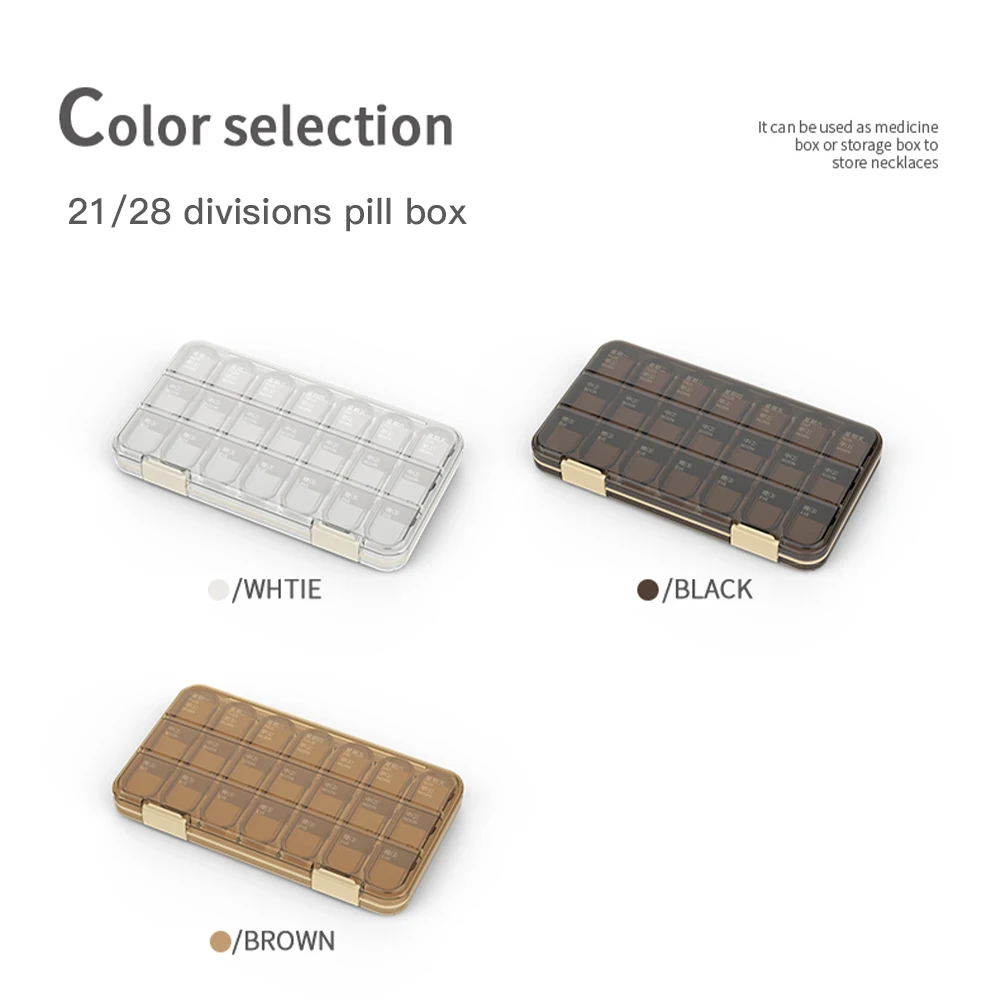 Название: еженедельная коробка для таблеток с тремя разделениями (21 отдел), еженедельная коробка для таблеток с четырьмя разделениями (28 делений)