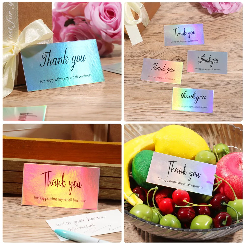 Лазерная Радуга, 50 шт., благодарственные открытки, светоотражающие открытки, онлайн-рознипосылка, вставки, подарки для покупок