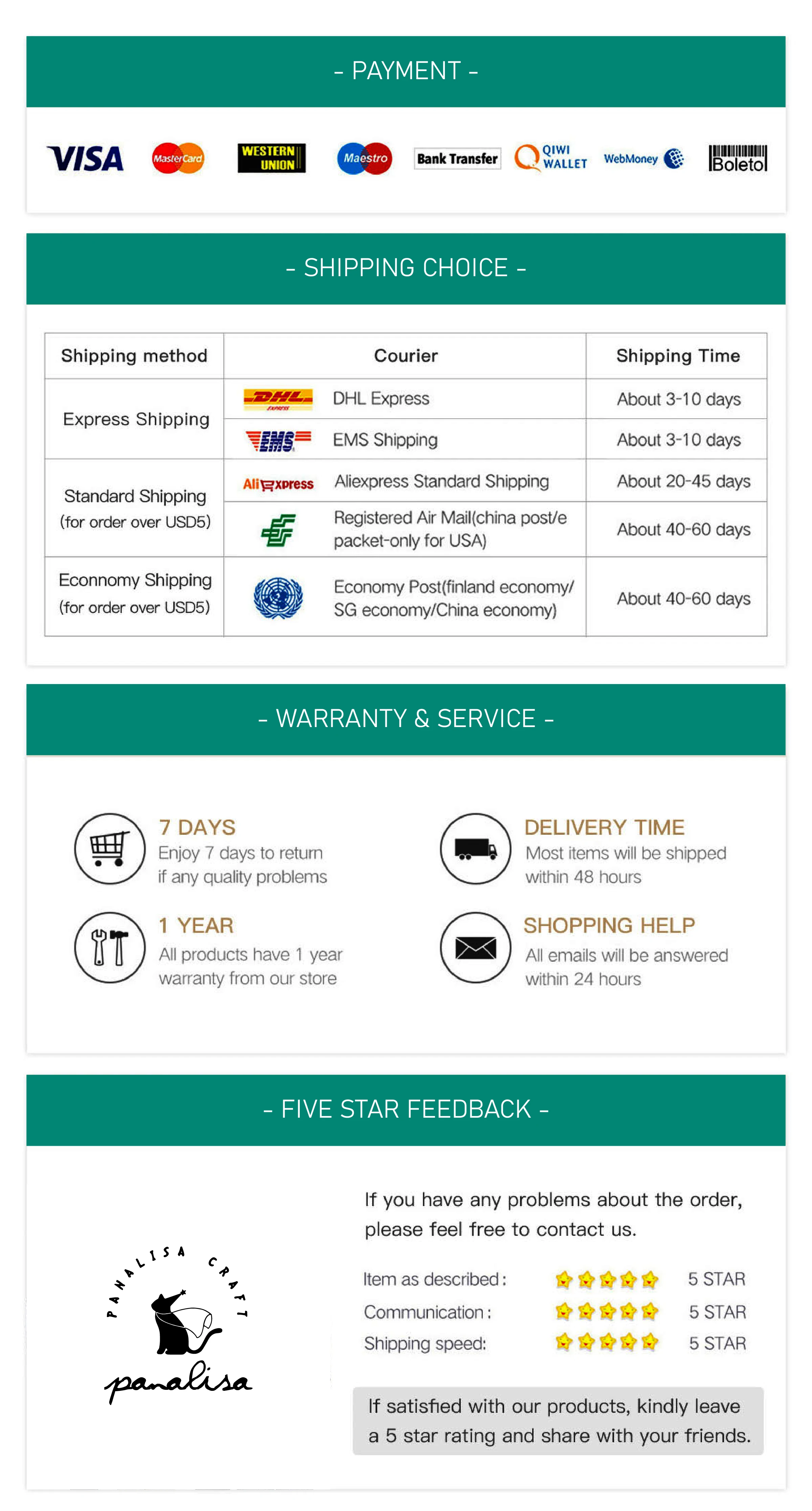 If you find the products broken or missing when receiving the parcel, please do not hesitate to contact us. We will always give you a satisfied result!