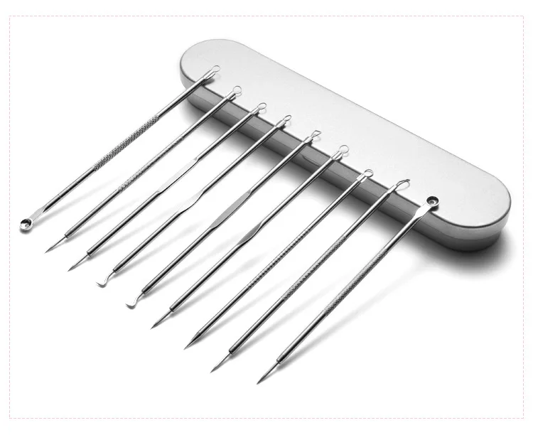9 различных игл для прыщей для различных проблем.