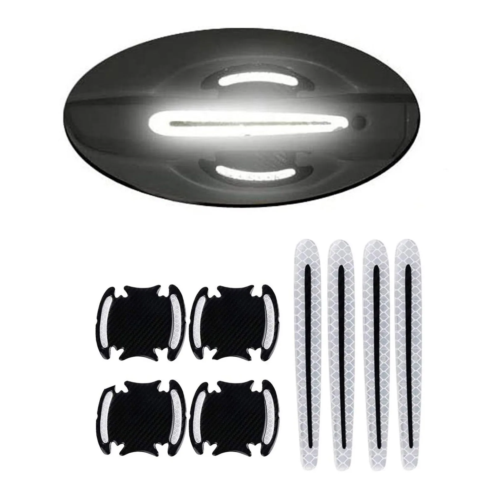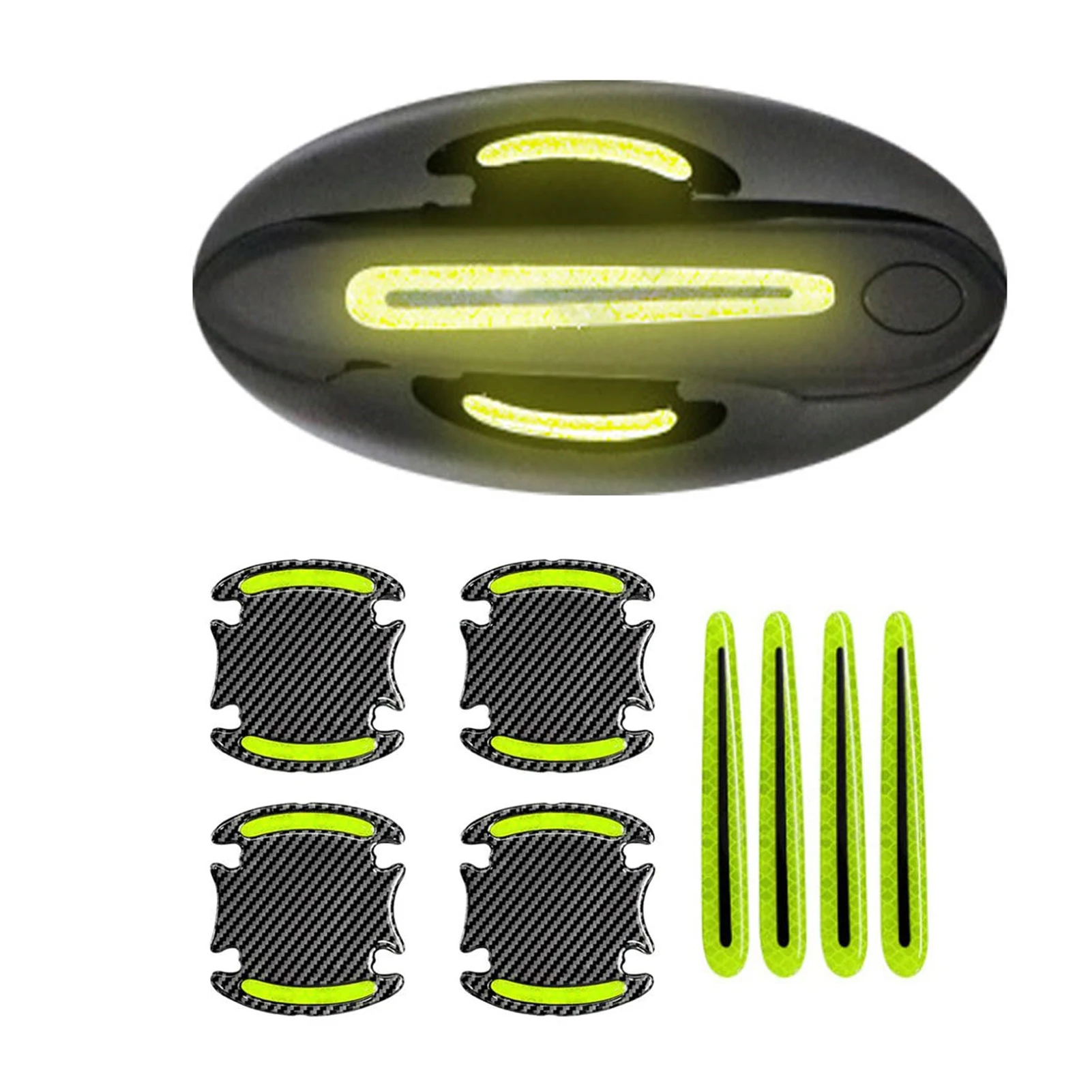 8 шт. Универсальная автомобильная ручка из углеродного волокна, защита от царапин, защитная пленка, Светоотражающие Полоски для безопасности автомобиля