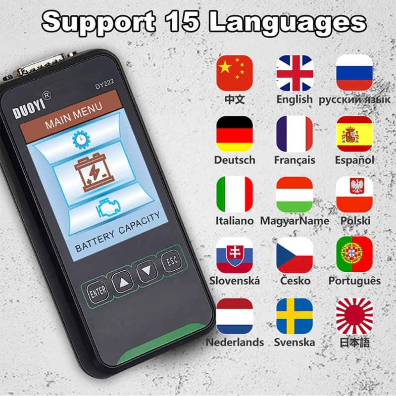 DUOYI 222 12V/24V Car Battery Tester Automotive 100- 1700CCA Battery Load Tester Auto Cranking and Charging System Test Tools