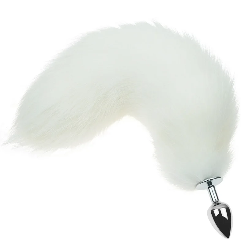 White fox tail small metal anal plug adult games cosplay erotic anus dilator stimulator sex toys for women ass butt plug tail