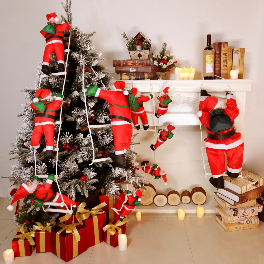 Санта-Клаус прикреплен к веревочной лестницы, которая когда он висел, делает его похожим на альпинизм. Подходит для использования в помещении и на улице.