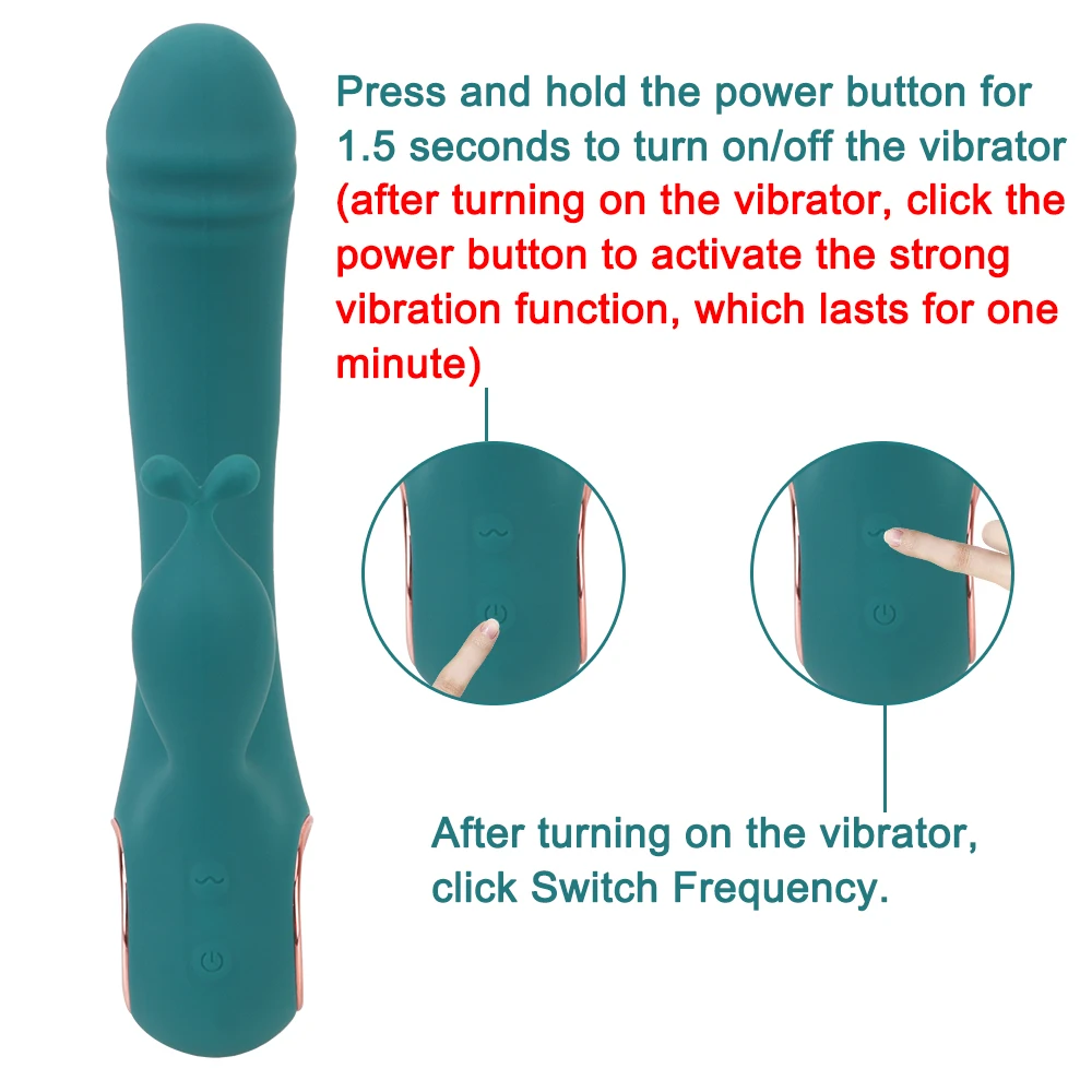 Пресс и удерживайте кнопку питания в течение 1,5 секунды, чтобы включить/выключить Вибратор (после включения вибратор, нажмите кнопку питания, чтобы активировать сильная функция вибрации, который длится в течение одной минуты)