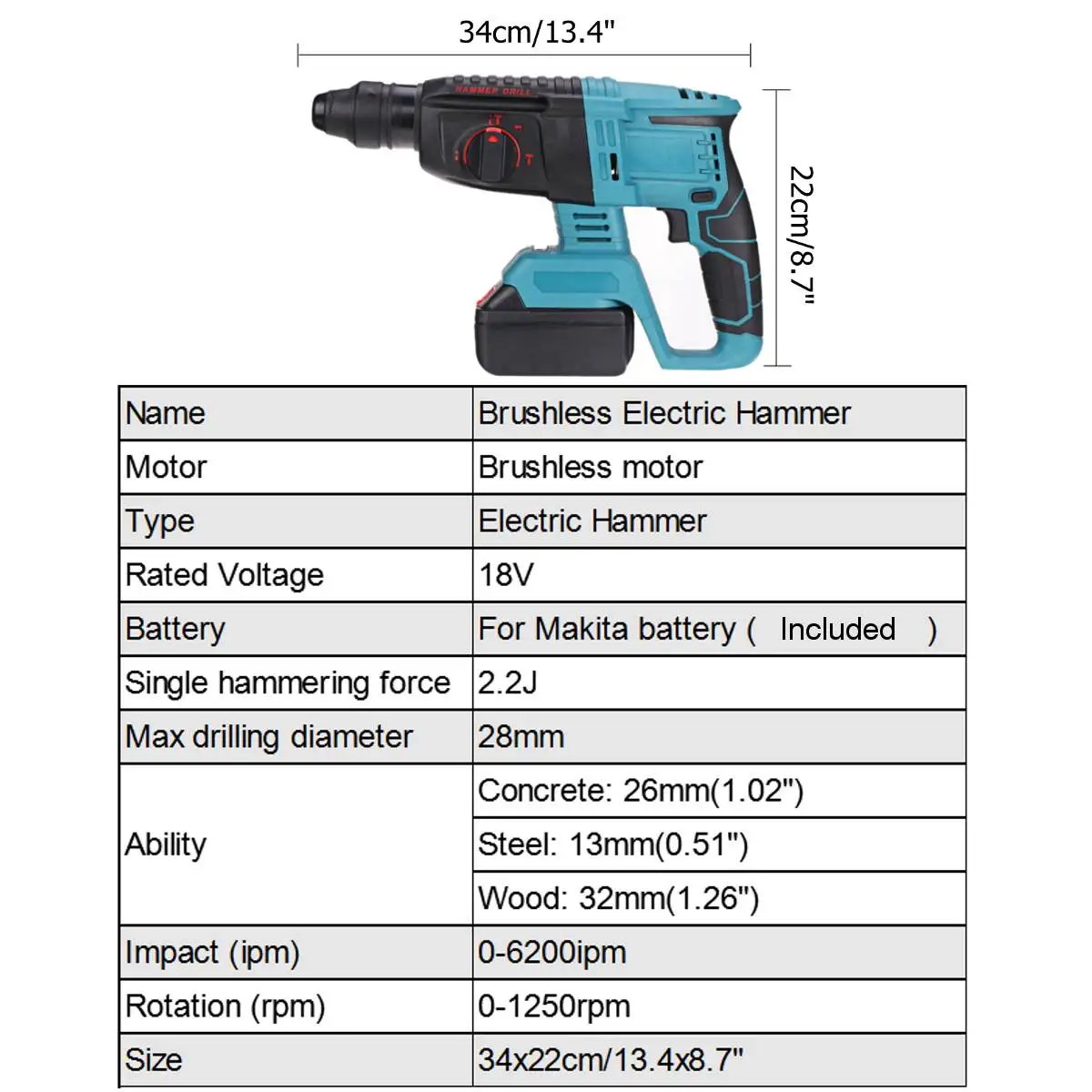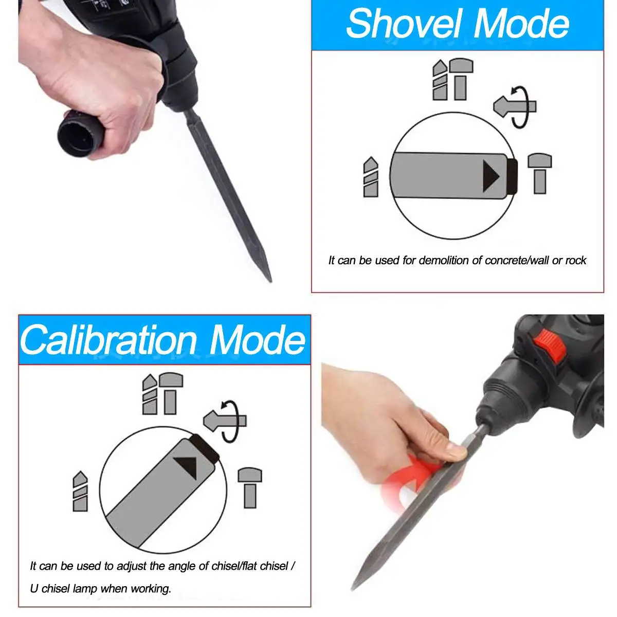 -Регулируемые режимы: 4 режима: режим плоского сверла, режим молотка, режим лопаты, режим калибровки