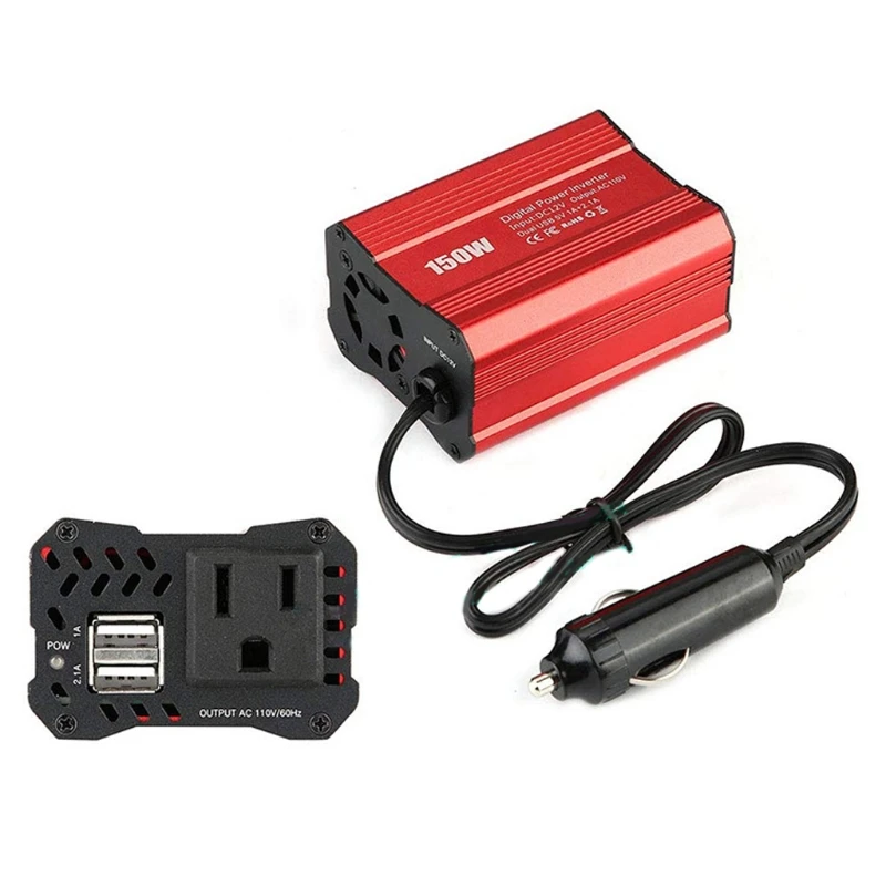Премиум 150 Вт автомобильный инвертор с 2 USB портами и розеткой переменного тока. Два USB-порта могут заряжать большинство мобильных телефонов и планшетов одновременно (максимальный общий выход 3,1 а), а розетка переменного тока отлично подходит для рождества. Подарки, Зарядные световые струны, ноутбуки, молокоотсосы, CPAP-машины, Атомайзеры, игровой автомат, kindle, телевизор, DVD-плеер, лампа, iPad и другие электронные устройства