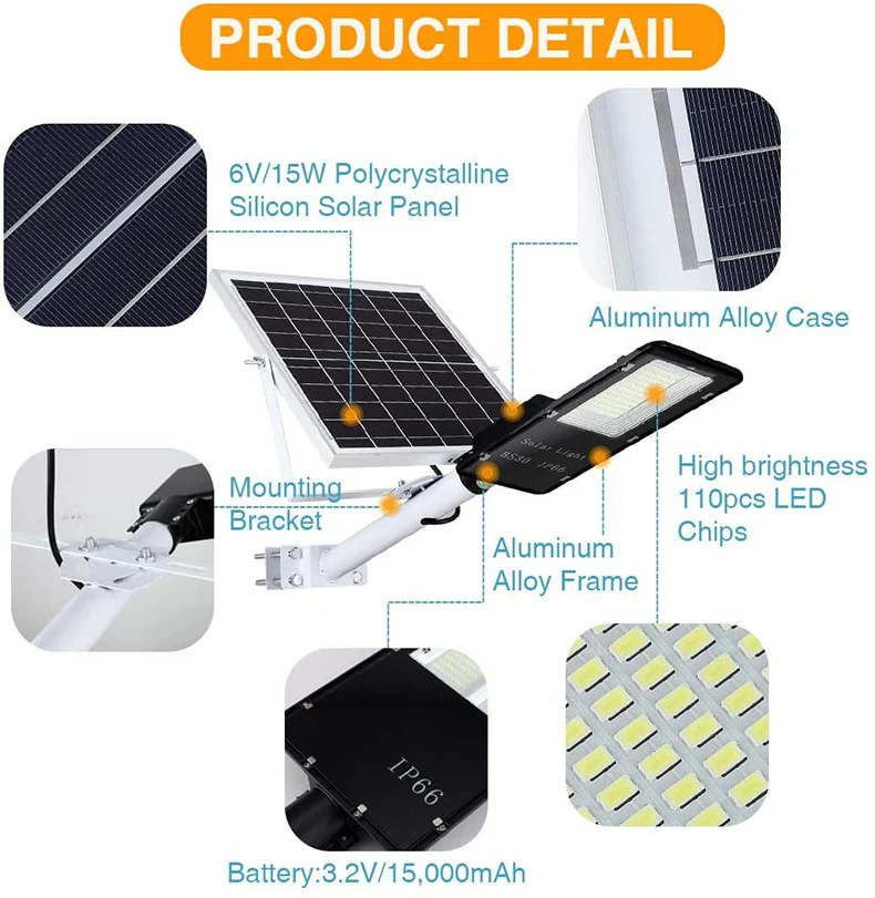 1. 6 В/15 Вт поликристаллический кремний солнечная панель 2. Чехол из алюминиевого сплава