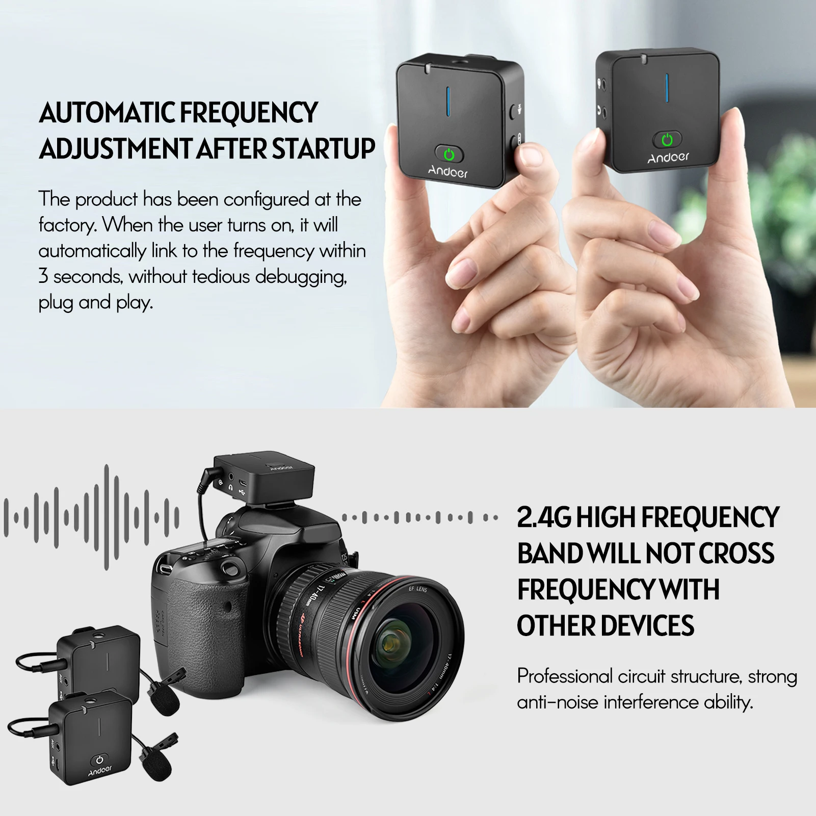 Беспроводная записывающая микрофонная система Andoer MX5 2,4G с клипсой Lavalier Mics 50M для смартфонов DSLR-камеры DV Vlog Video