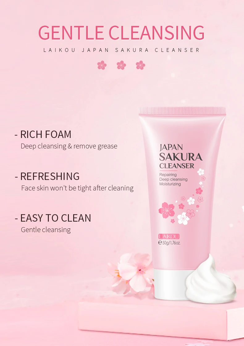 Японское очищающее средство Sakura может глубоко очистить поры, чтобы легко удалить грязь, масло и макияж. Содержит экстракт цветка Prunus Lannesiana и Niacinamide, увлажняет и восстанавливает поврежденную кожу, чтобы помочь коже против старения.