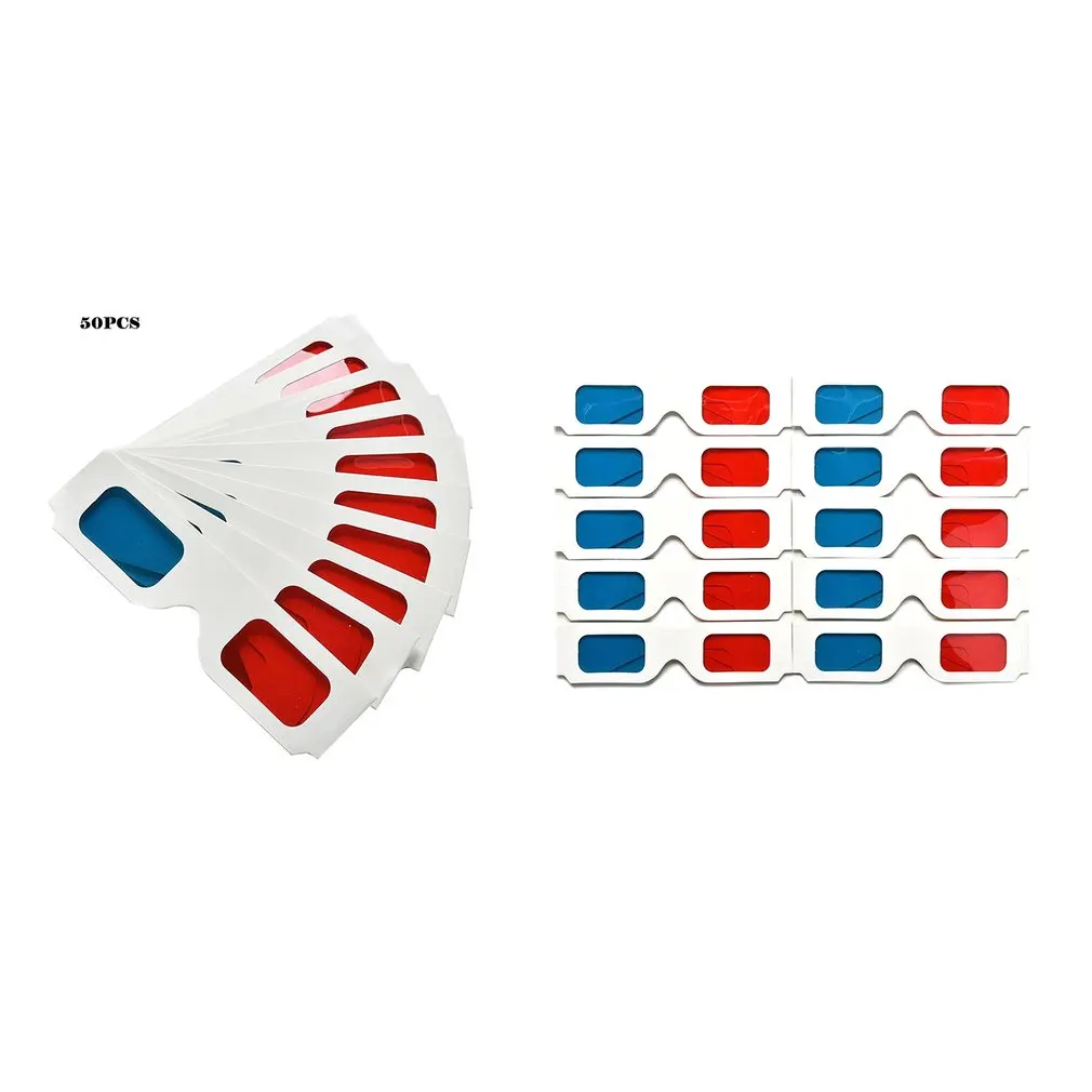 50pcs/100pcs/10pcs/lot Universal Paper Anaglyph 3D Glasses Paper 3D Glasses View Anaglyph Red/Blue 3D Glass For Movie Video