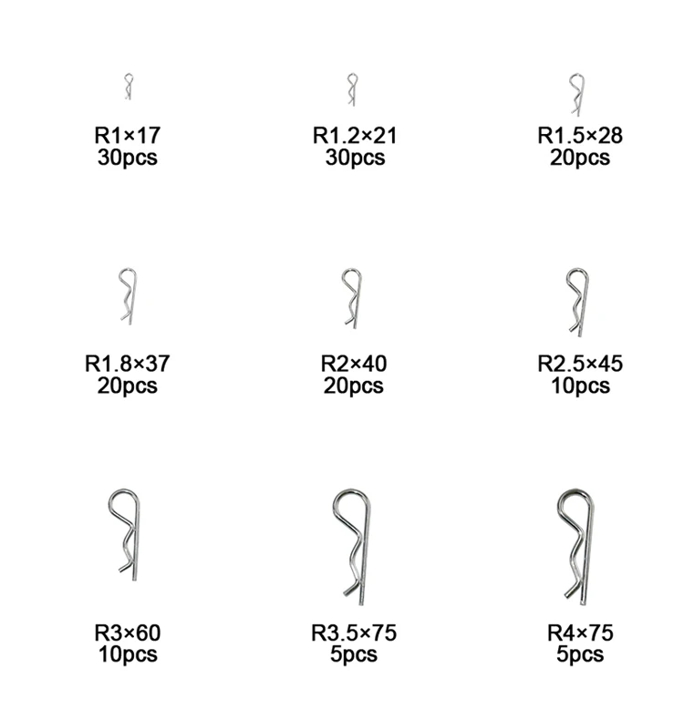 1. Несколько вариантов; 150 шт. R зажимов 9 размеров могут удовлетворить ваши различные потребности.