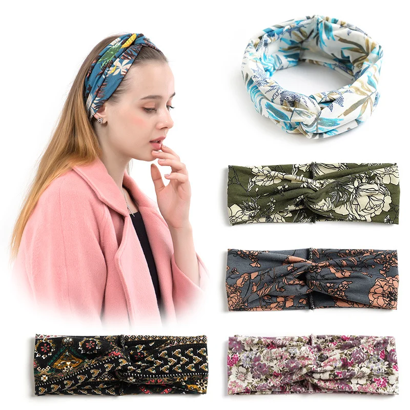 Богемные широкие хлопковые эластичные женские повязки на голову с цветочным принтом, эластичные повязки на голову для женщин, тюрбан, головные уборы, ободки для девочек