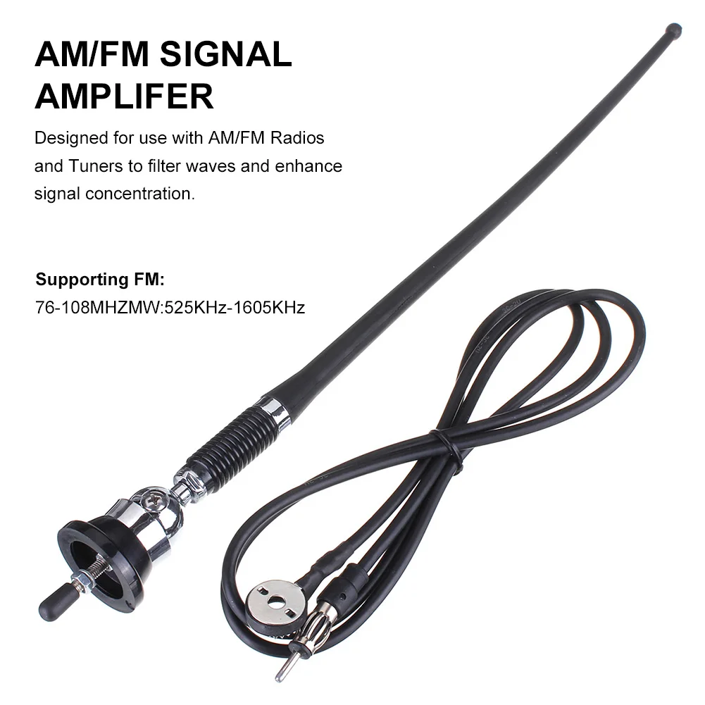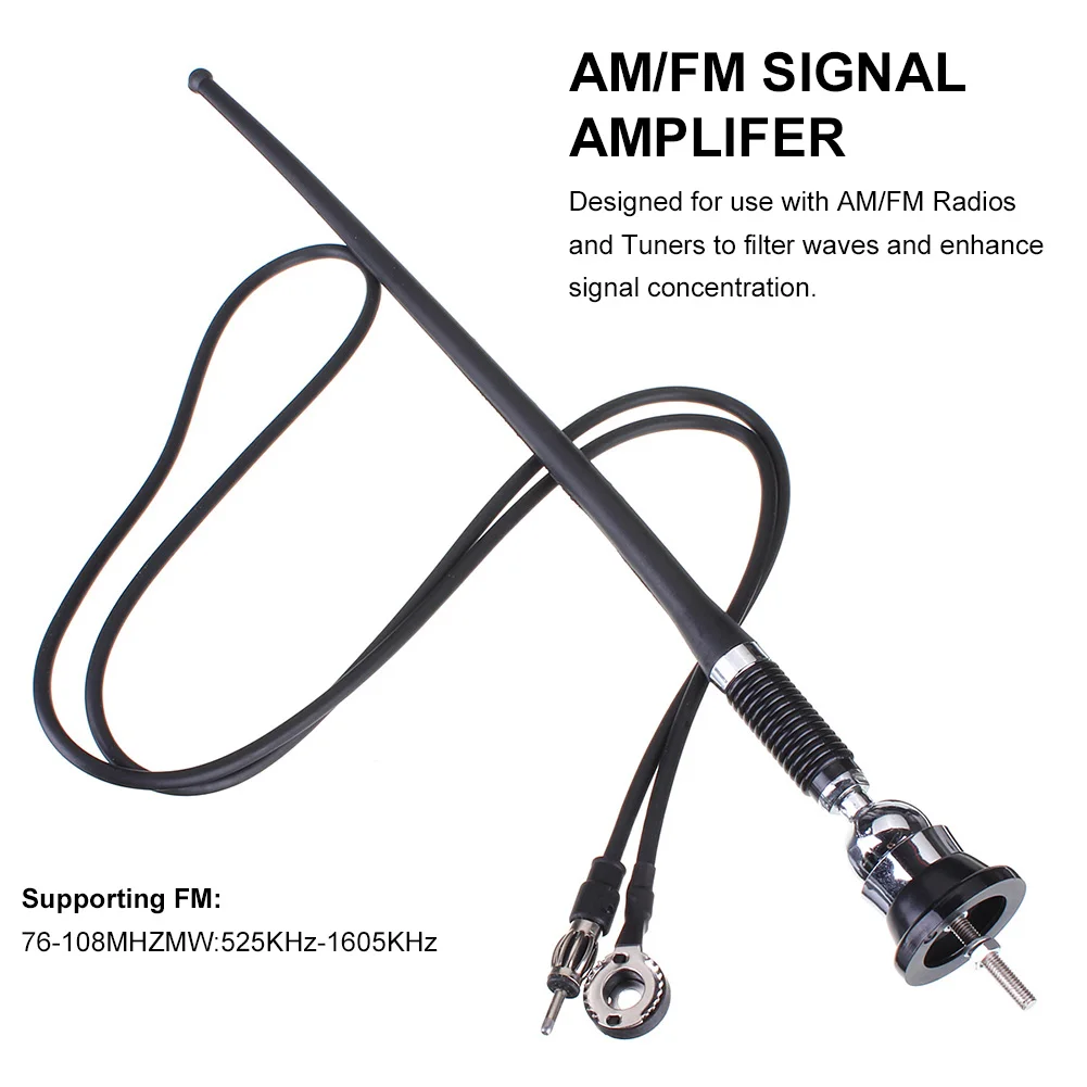 * 6. Универсальная автомобильная крыша радио AM / FM антенна Подходит для большинства автомобилей. (Примечание: Если вы не можете отрегулировать угол антенны, пожалуйста, попробуйте ослабить винт на дне, прежде чем регулировать угол, а затем повторно затянуть его.)