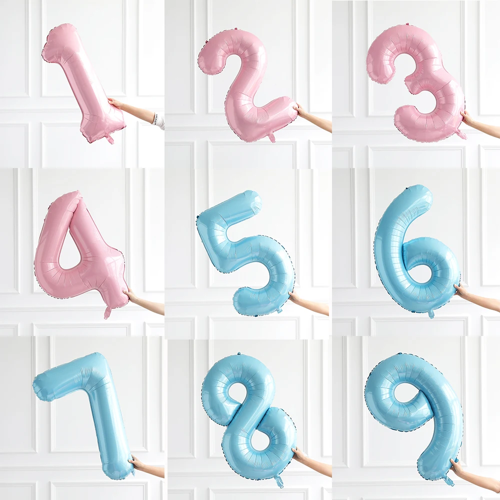 40 дюймов пастельный голубой розовый фольга номер воздушный шар 1 2 3 4 5 6 7 8 9 день рождения ребенка душ Свадебные украшения Дети Globos