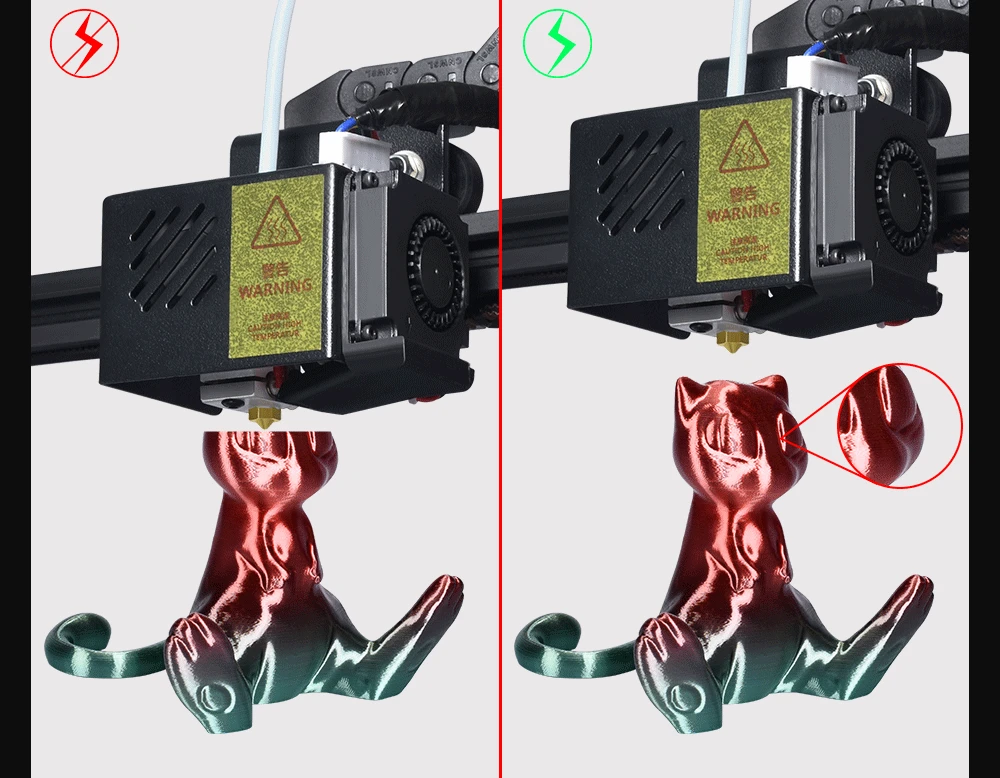 Когда мощность отключена неожиданно, hotend автоматически поднимается, и сопло не будет сжигать модель печати