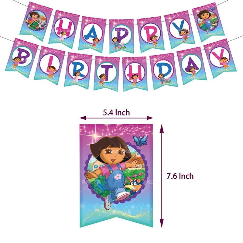 1 комплект, Dora The Explorer, латексные шары, торты, флаги, баннер, набор «С Днем Рождения», вечерние Игрушки для девочек, подарок, украшение