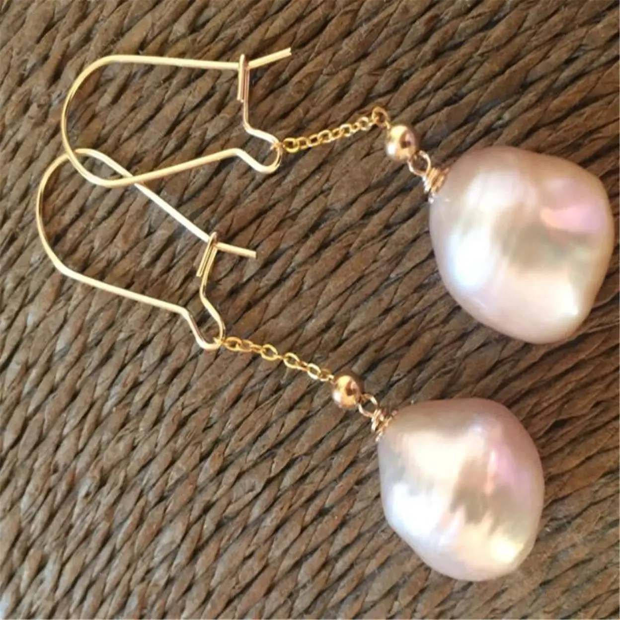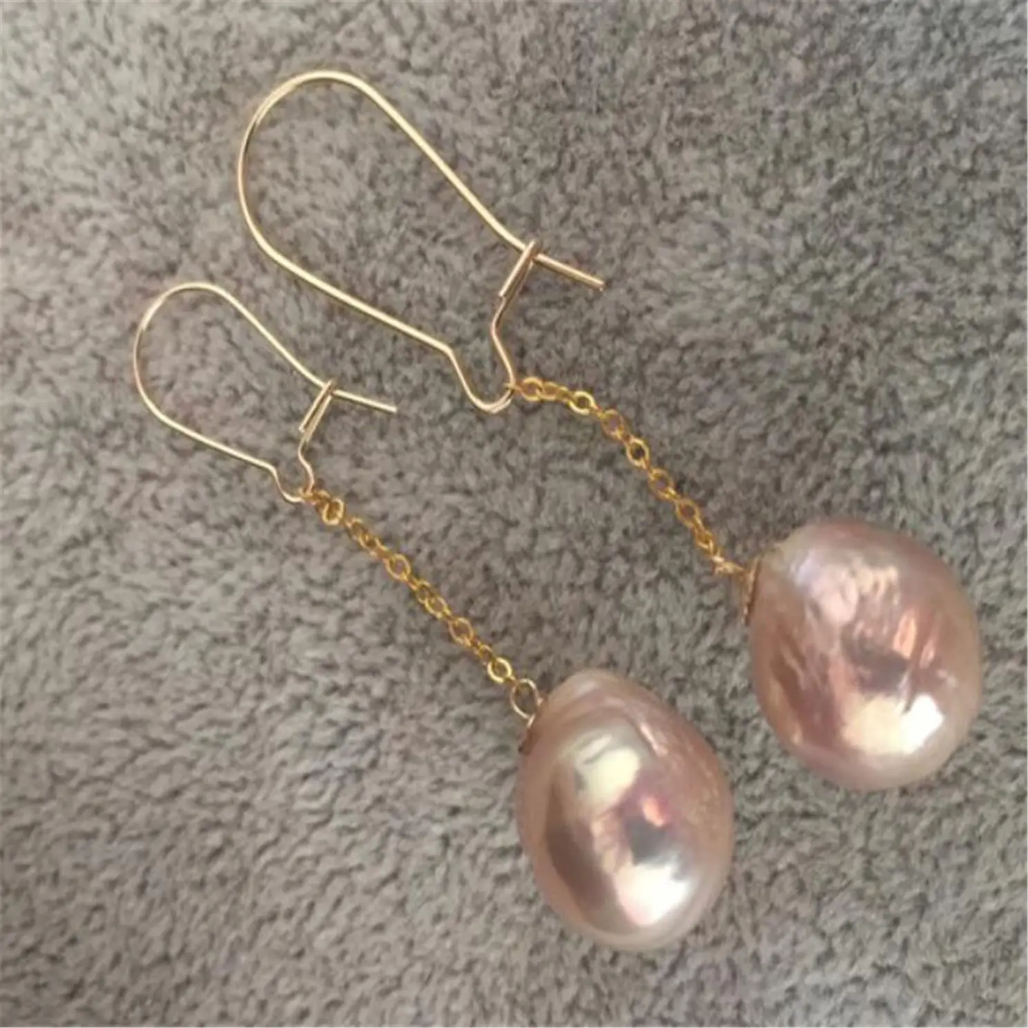 12-13 мм розовые серьги с барочным жемчугом 18 К золотые серьги Висячие висячие серьги настоящий свадебный подарок Аврора женские завораживающие ювелирные изделия культивированные