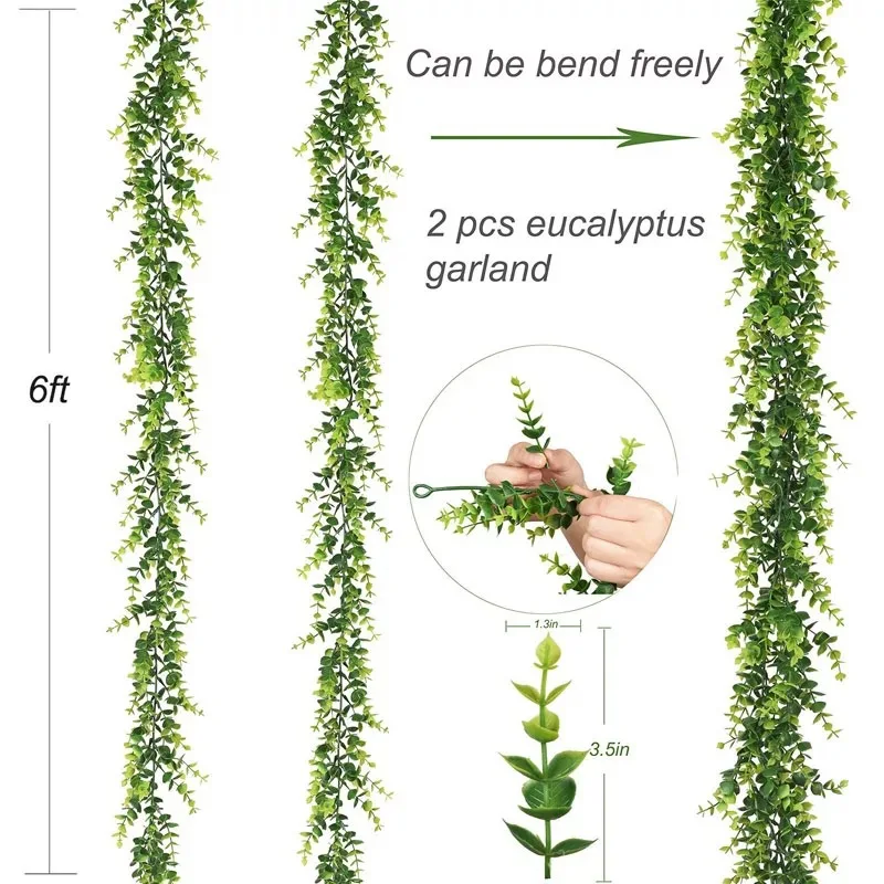 2. Простота в использовании: каждый искусственный Эвкалиптовый венок имеет крючки на обоих концах для легкой подвешивания. Вы также можете сочетать эти искусственные эвкалиптовые венки с другими растениями для создания различных стилей украшения в соответствии с вашими личными потребностями.