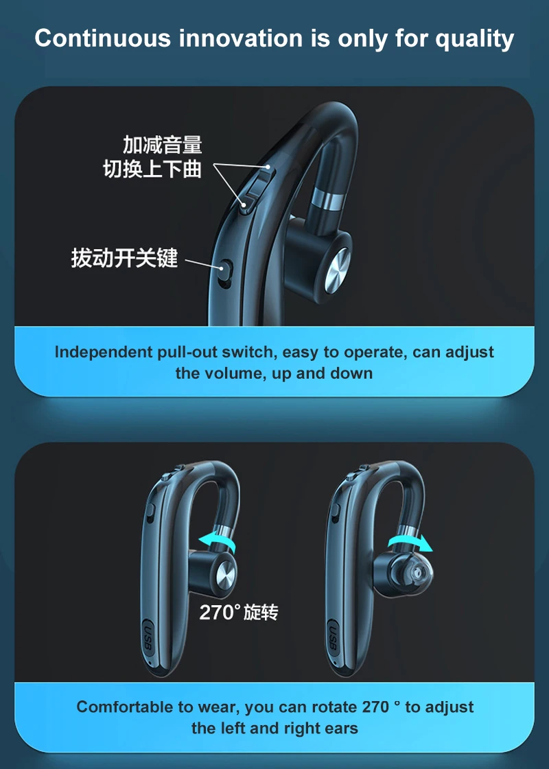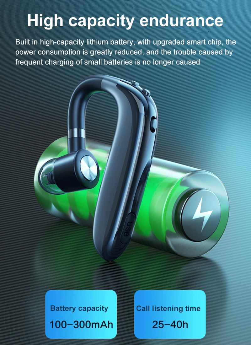 Стиль висячего уха очень удобный, и он не будет чувствовать боль при ношении в течение длительного времени.