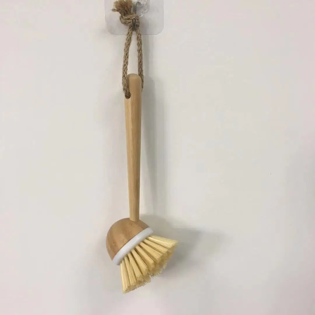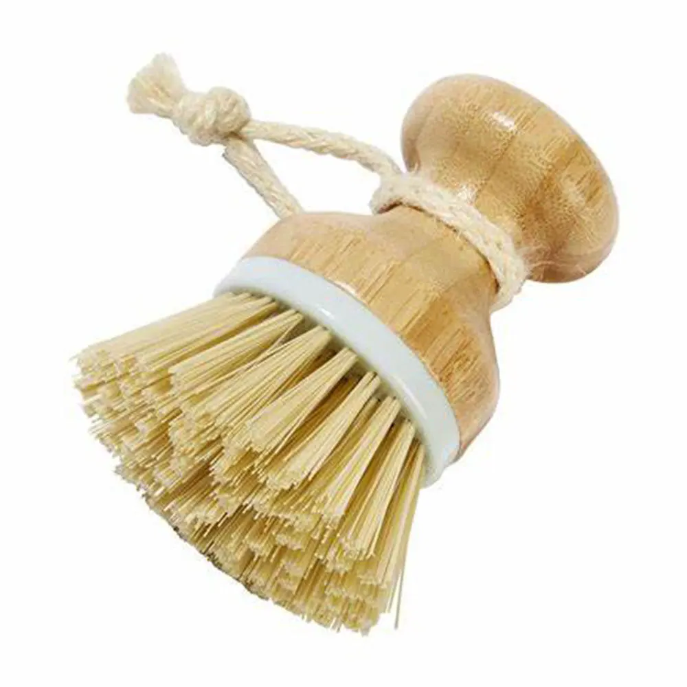 Экологически чистый бамбуковый горшок, миска для посуды, моющая щетка, кухонный чистящий инструмент с ручкой из пеньковой веревки, удобный в использовании