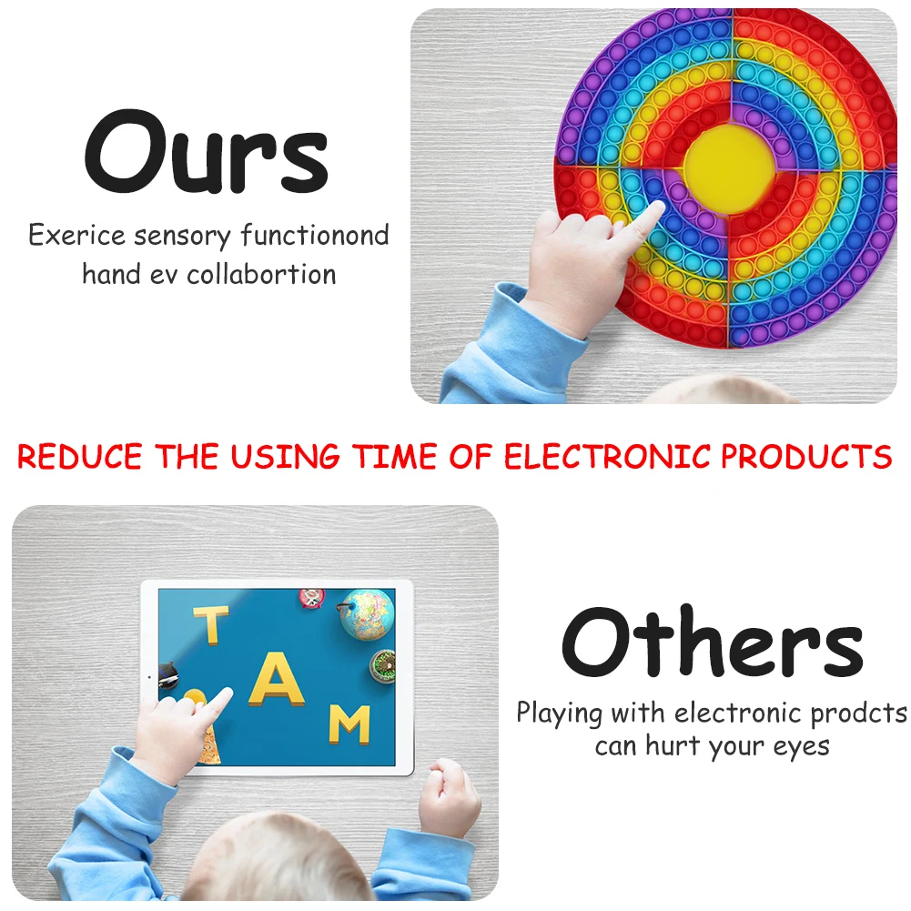 1. Эта игрушка с пузырьками-отличная сенсорная игрушка, вы можете нажимать ее снова и снова, чтобы поднять ее. Повторяя одно действие, чтобы помочь детям и взрослым в состоянии высокого стресса или тревоги снять и снять стресс, эти игрушки очень подходят для офисов, домов, церкви, библиотеки, станций, специальные учебные классы, физиотерапевтические комнаты и сенсорные комнаты и путешествия.