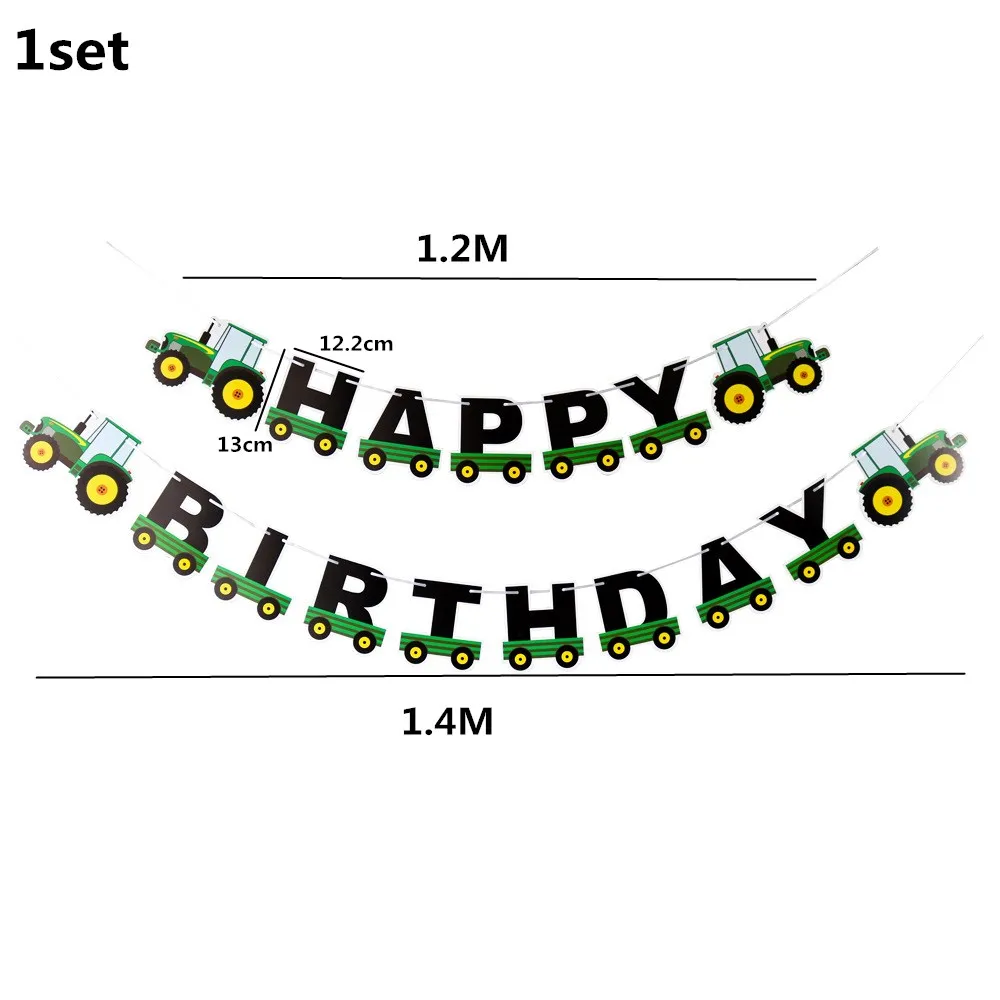 Farm Green Theme Happy Birthday Backdrop Balloons Tractor Construction Vehicle Vinyl Background Birthday Party Decoration