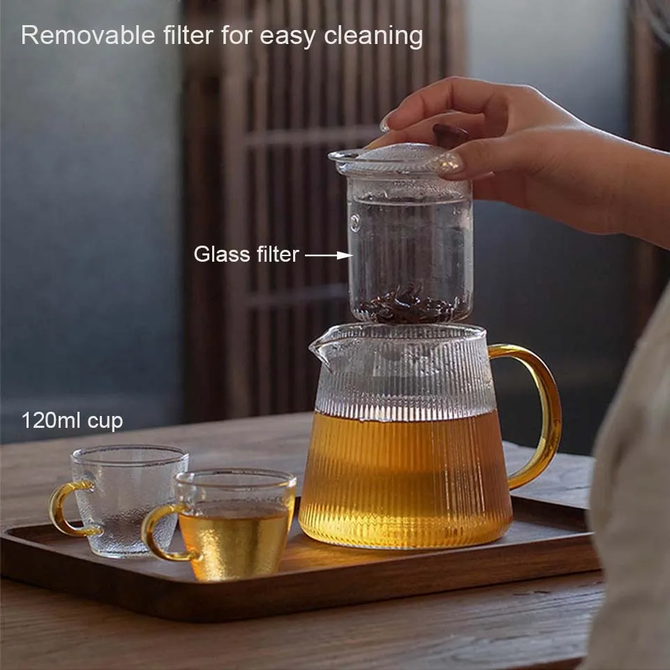 * Чайник изготовлен из прозрачного стекла, а полосатый дизайн делает чайник более красивым и прочным. Он разработан