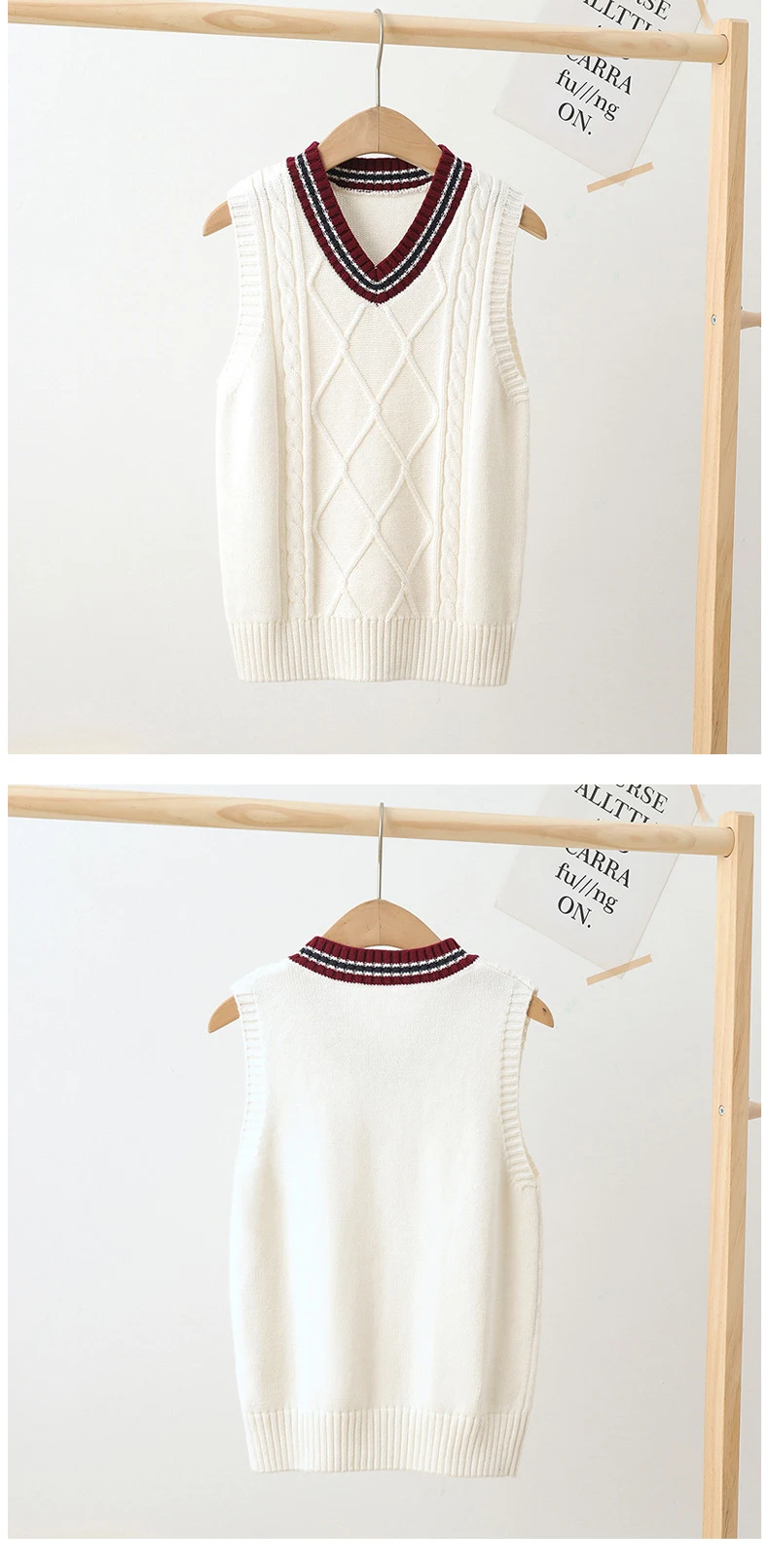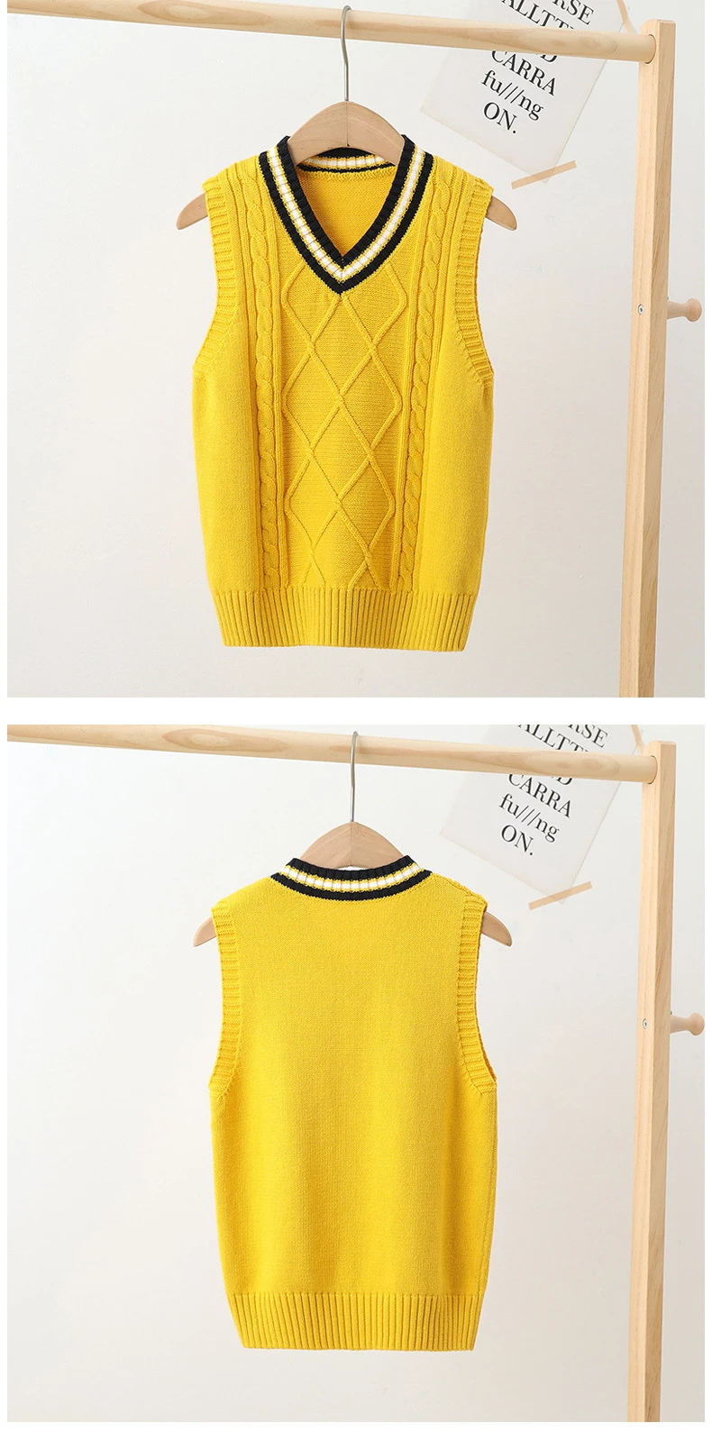 Осенний Детский свитер, жилет, верхняя одежда для мальчиков и девочек, Хлопковые вязаные пальто без рукавов с v-образным вырезом, одежда для детей, школьная форма