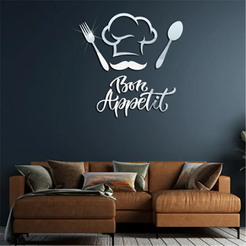 Bon Appetit французские настенные наклейки для кухни, шеф-повара, кухонная зеркальная настенная наклейка, столовая, французская кулинарная Кепка, акриловая наклейка