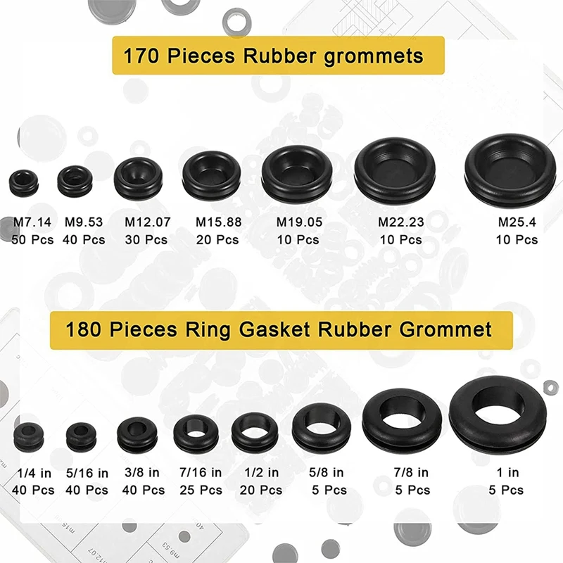 Достаточное количество и разные размеры: посылка содержит 170 резиновых шайб 7 различных размеров и 180 кольцевых шайб разных размеров, в общей сложности 15 размеров с 350 петлями, количество и различные размеры могут удовлетворить ваши различные потребности