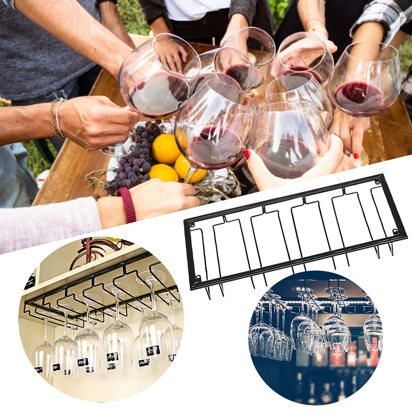 Прочное качество: стеклянный Кронштейн изготовлен из высококачественного железа, прочный железный материал прочный и разработан с высококачественным покрытием. Эффективно предотвращает ржавчину и ржавчину держателя винного стекла. Эта полка для Винных Бокалов позволяет сэкономить пространство в шкафу, идеально подходит к углу под полкой и элегантно подходит для украшения вашей кухни или бара. Стойка для Винных Бокалов с пятью слотами-может вместить до 18 бокалов для вина, эта стойка отлично выглядит. Держатель для Винных Бокалов подходит для бокалов с нижним диаметром более 4 см и менее 9 см.Включает: