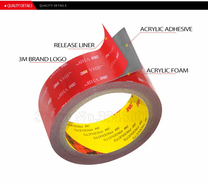 3 м с акриловой пеной лента отличается высокой производительностью кожуру и Сдвига Адгезии, высокая внутренняя прочность, хорошая формуемость и отличный пластификатор сопротивление.