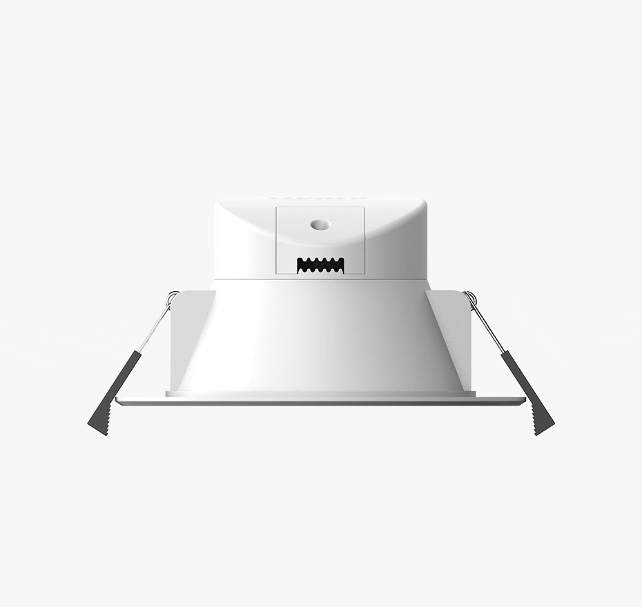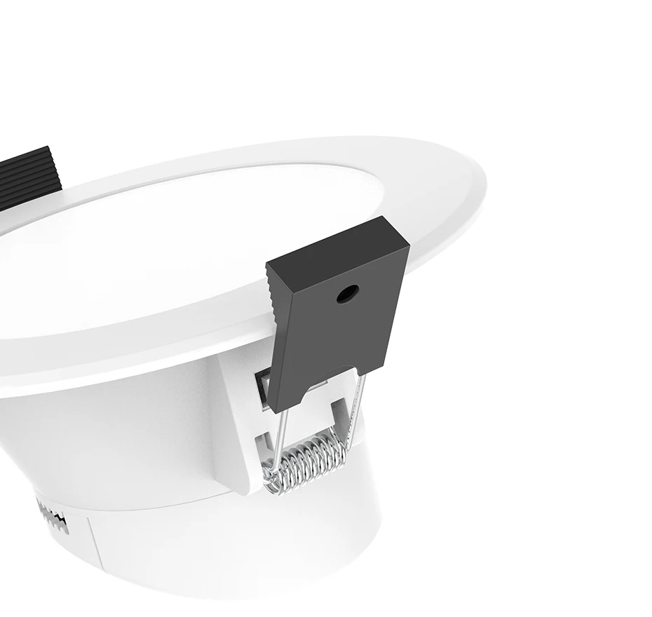 Установите в потолок: Поместите Пружинные пряжки с обеих сторон лампы вверх и вертикально в отверстие, как показано на рисунке.Отрегулируйте лицевое кольцо: Отрегулируйте лицевое кольцо, чтобы лампа равномерно прилегала, и завершите установку.