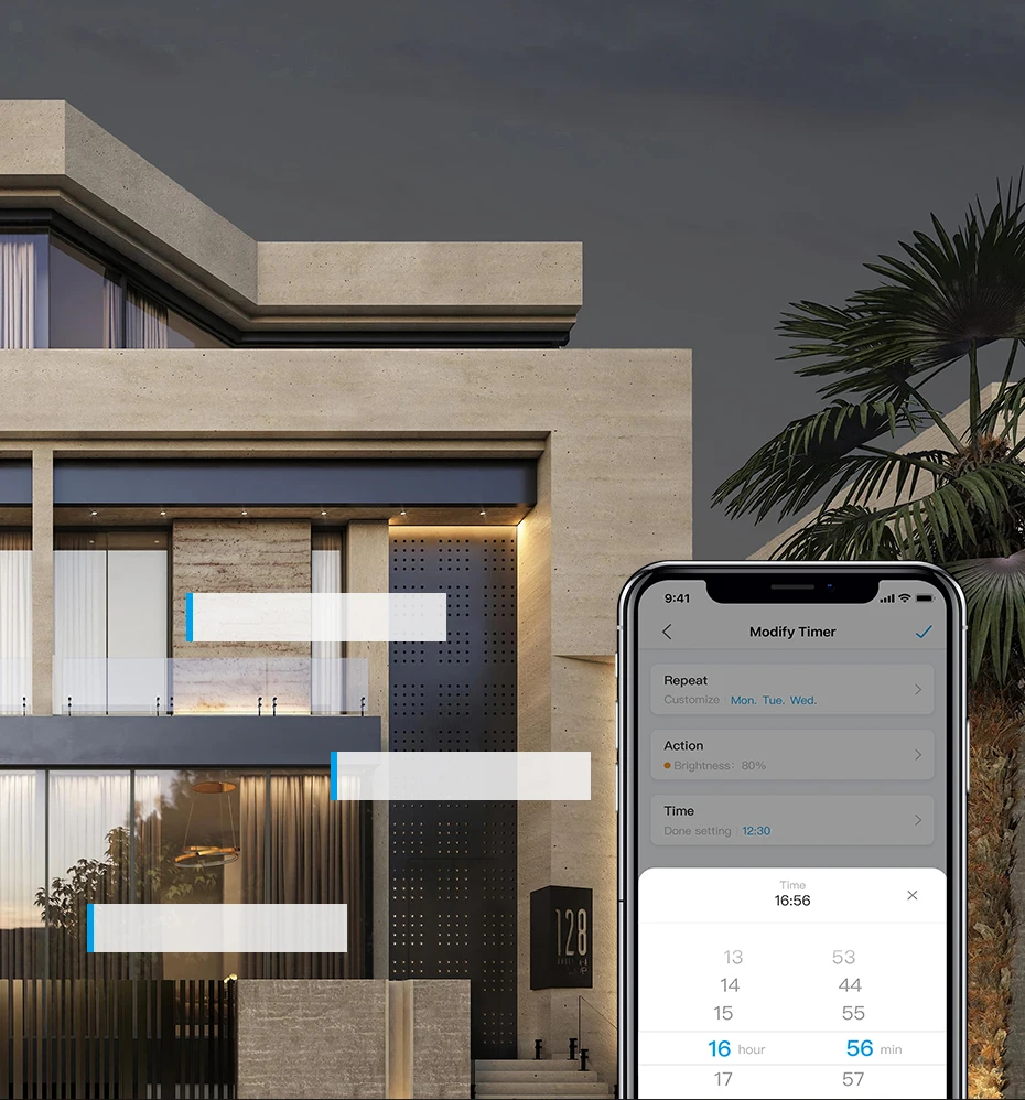 Функция таймераАвтоматическое включение/выключение с функцией таймераУправляйте через смартфон (Android и IOS), вы можете управлять светом в любом месте.08:30/включение12:00/выключатель18:00/включение