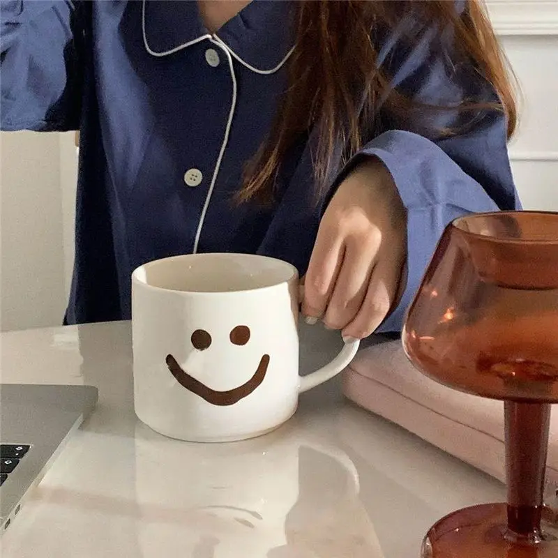 Ins система исцеления простой стиль кофе цвет смайлик кружки керамические чашки кофе чашка для офиса дома молока чашка для завтрака пара чашки