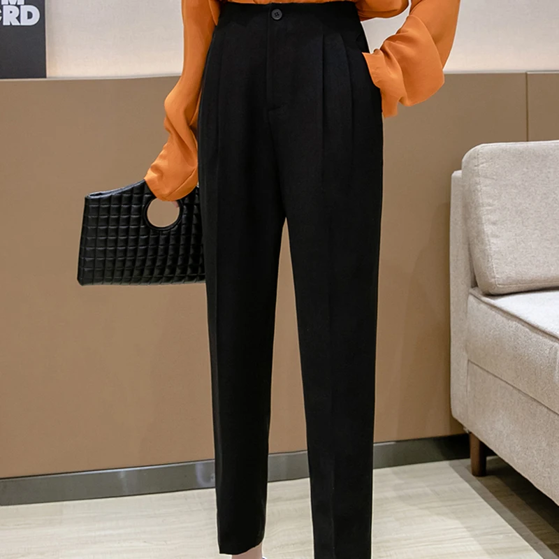 Офисный женский однотонный повседневный костюм, брюки 2021, весенне-осенняя рабочая одежда, прямые брюки с высокой талией, шикарные шаровары, Капри, брюки B18440X