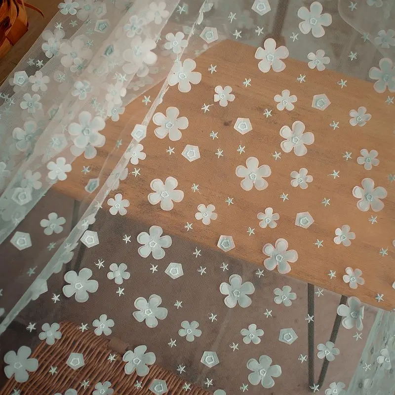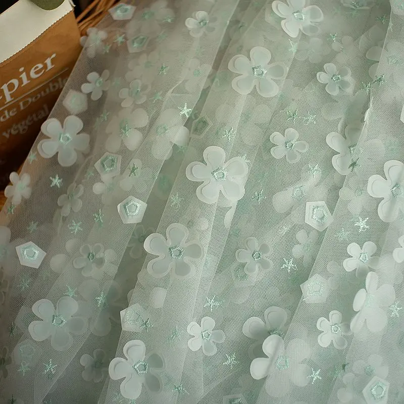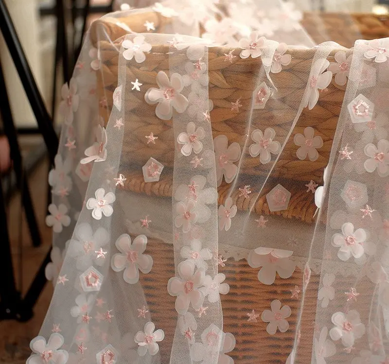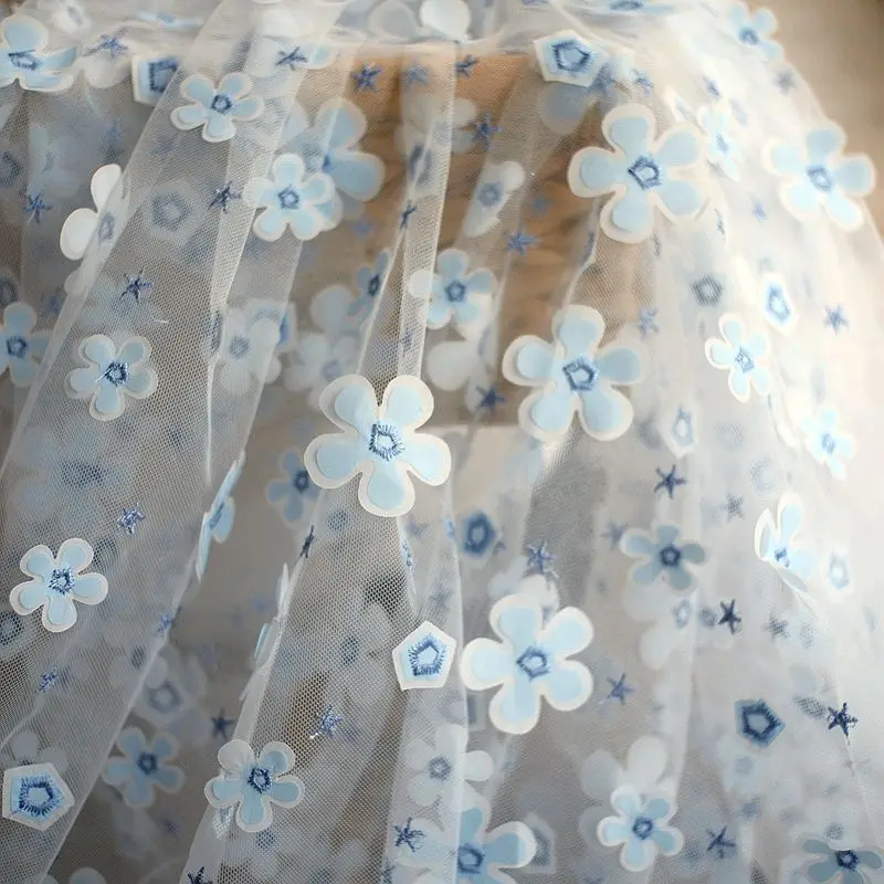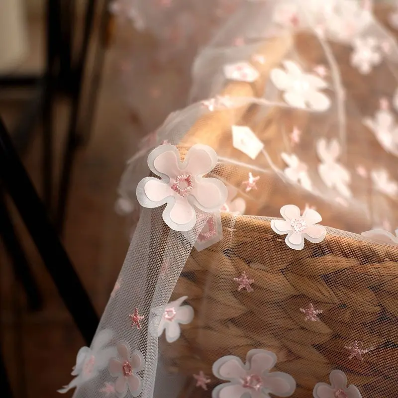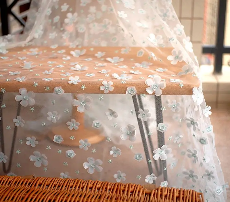 1 ярд белый цветок вышивка сетка кружева 3D Трехмерная аппликация Детская одежда свадебное платье украшение юбка ткань
