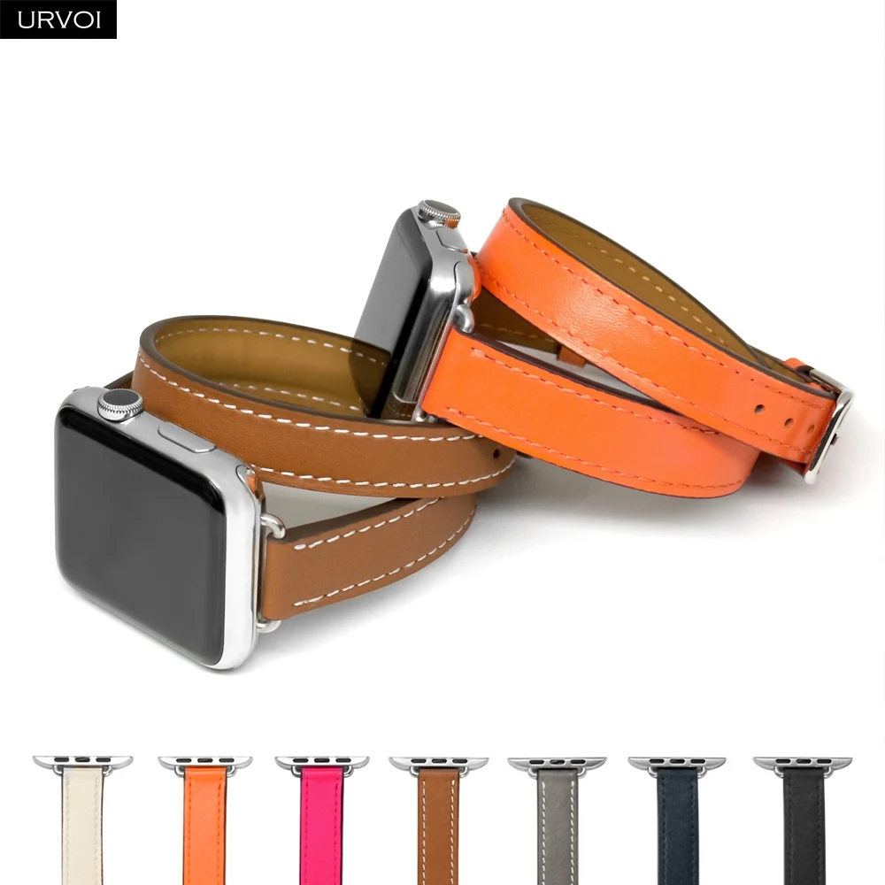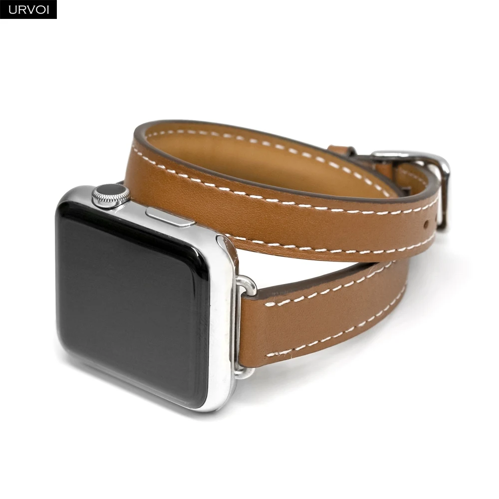 URVOI Attelage Double Tour для Apple Watch band series 6 SE 5 4 3 2 1 Экстра элегантное соединение ремешок из натуральной кожи для iWatch