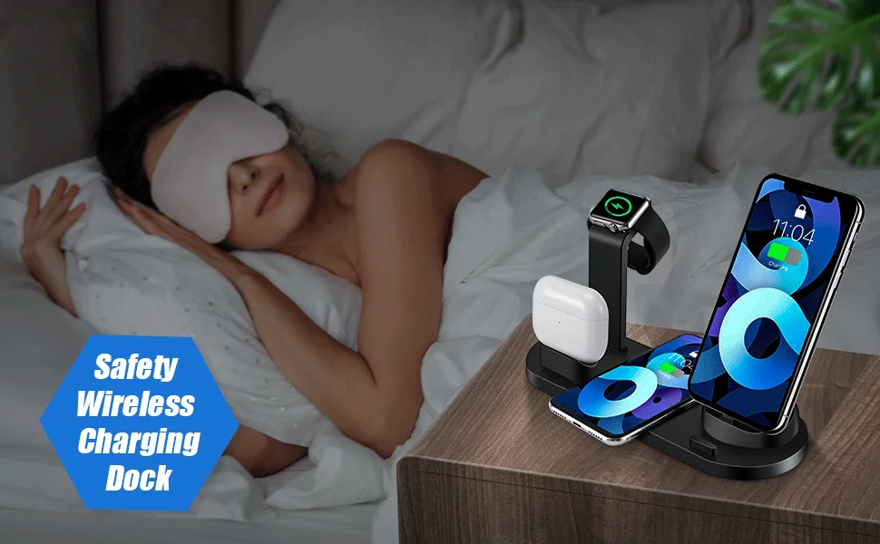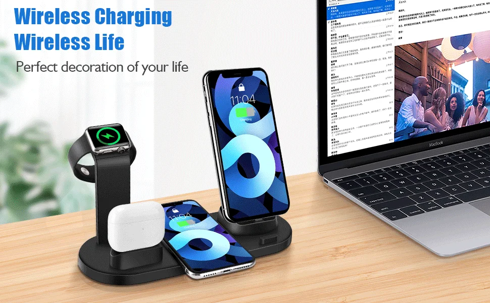 【 3 в 1 Беспроводное зарядное устройство standэта Подставка для зарядки была специально разработана для сотовых телефонов с поддержкой Qi (для iPhone 12/12 mini/12 Pro/12 Pro Max/SE 2020/11/11 Pro/11 Pro Max/X/XS MAX/XR/8/8 Plus/Samsung Galaxy S20/S10 /S9 /S8 /Plus/S7) для телефонов без Qi требуется приемник беспроводной зарядки qi. Полная совместимость с наручных часов iwatch, 6/iPhone SE/5/4/3/2/1, Airpods 1/ 2/ Pro.
