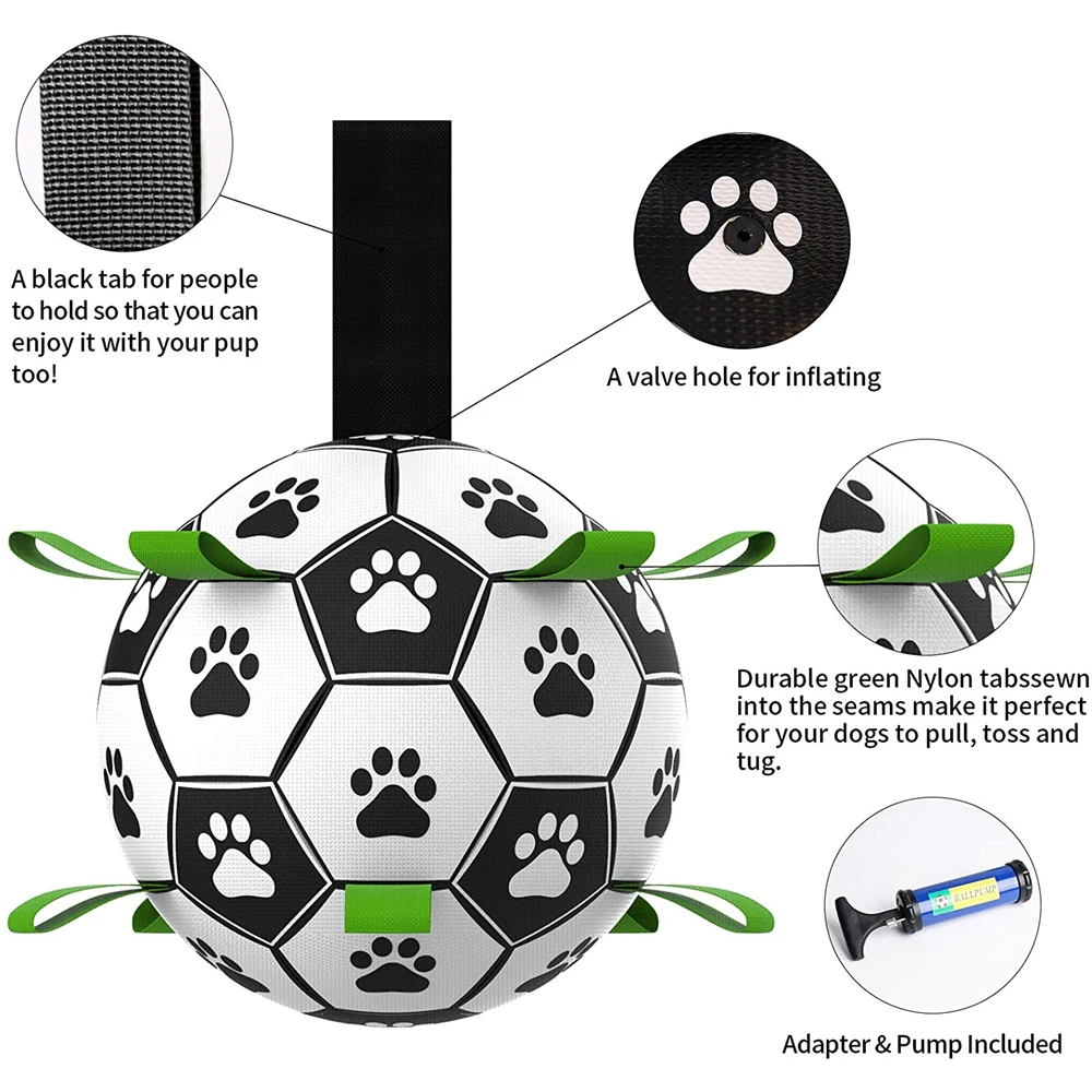 Уникальная прочная игрушка для собак: футбольная игрушка для собак с нейлоновыми вкладками, пришитыми равномерно в швы, не только создает нестабильный отскок, который собаки любят гоняться, но и облегчает собакам получение, бросок, смокинг и извлечение. Есть более длинный ремешок для людей, чтобы держать мяч, что делает его отличная интерактивная игрушка для собак, чтобы обучить своих собак.