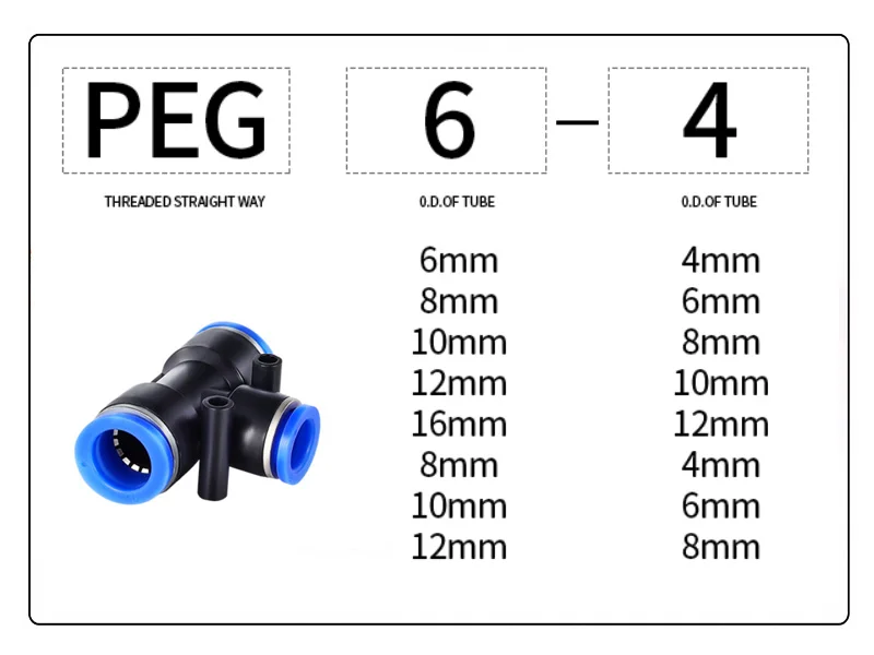 Диаметр трубы: 4 мм/6 мм/8 мм/10 мм/12 мм/14 мм/16 мм
