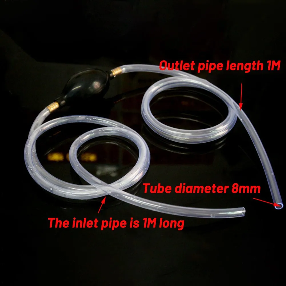 Поместите вход в топливный бак и розетку в ведро масла и управляйте расстоянием между трубой и разницей в высоте между входом и выходом; (Труба достаточно тонкая, чтобы достичь большей части топливного бака автомобиля. Труба достаточно прозрачная и мягкая, чтобы контролировать поток.)