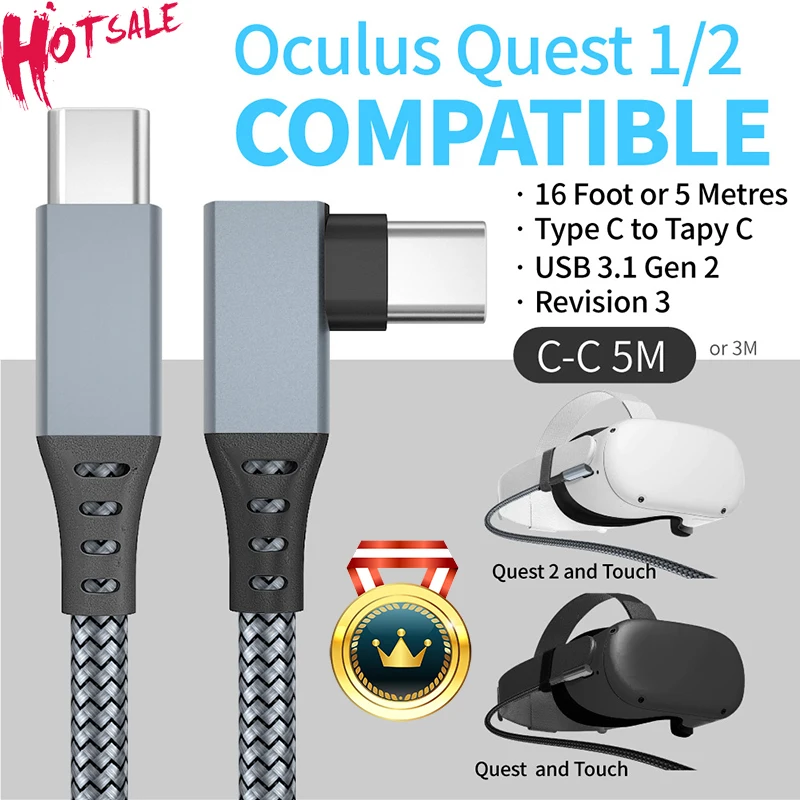 2) Модный дизайн: подходит для Oculus Quest/для Quest 2 VR, для кабеля Oculus Quest 16 футов (5 м), высокоскоростная передача данных и Быстрая зарядка от USB 3,0 типа C к USB типа A.