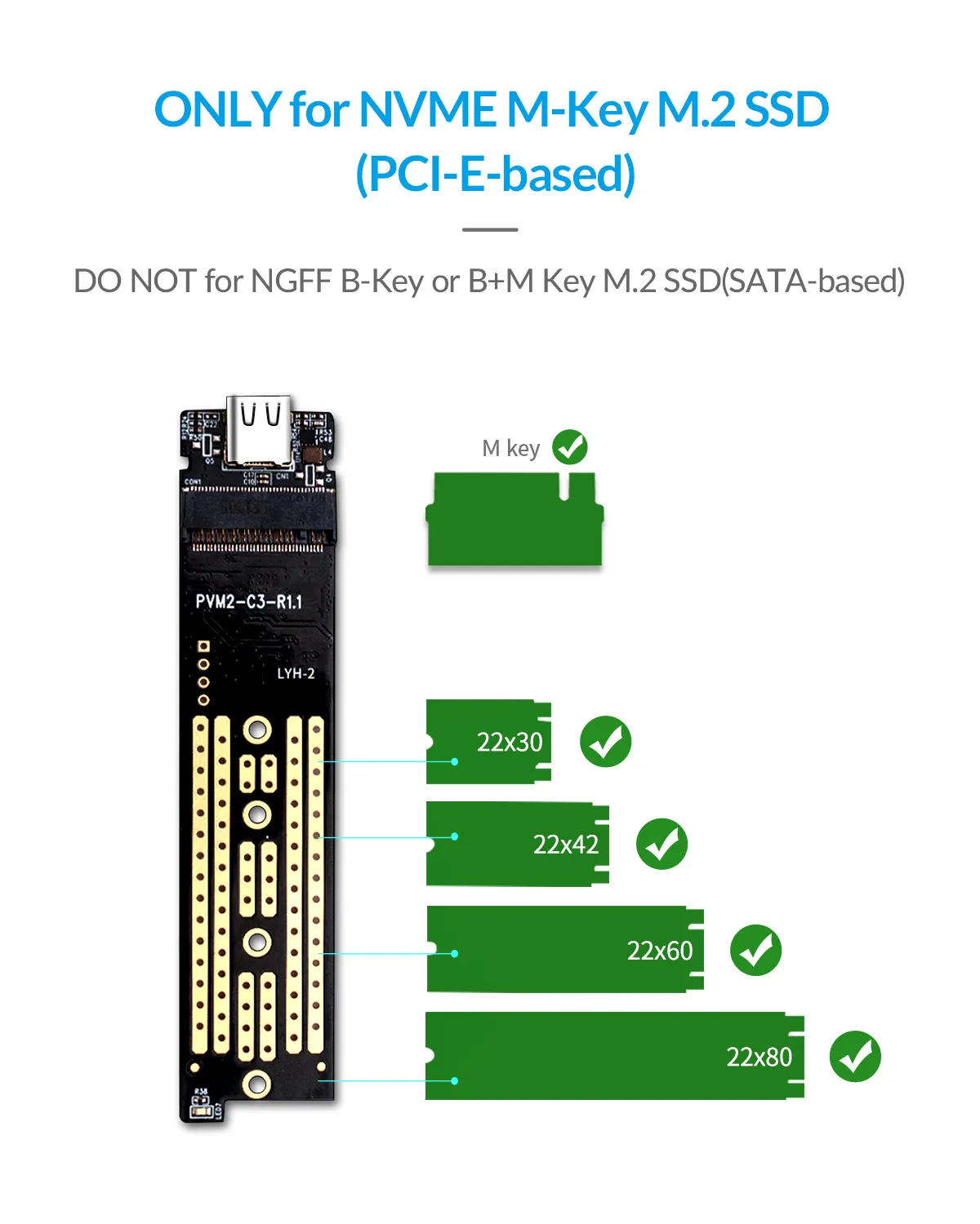 2. Чехол модели NVMe не совместим с NGFF SATA M.2 SSD, наоборот.
