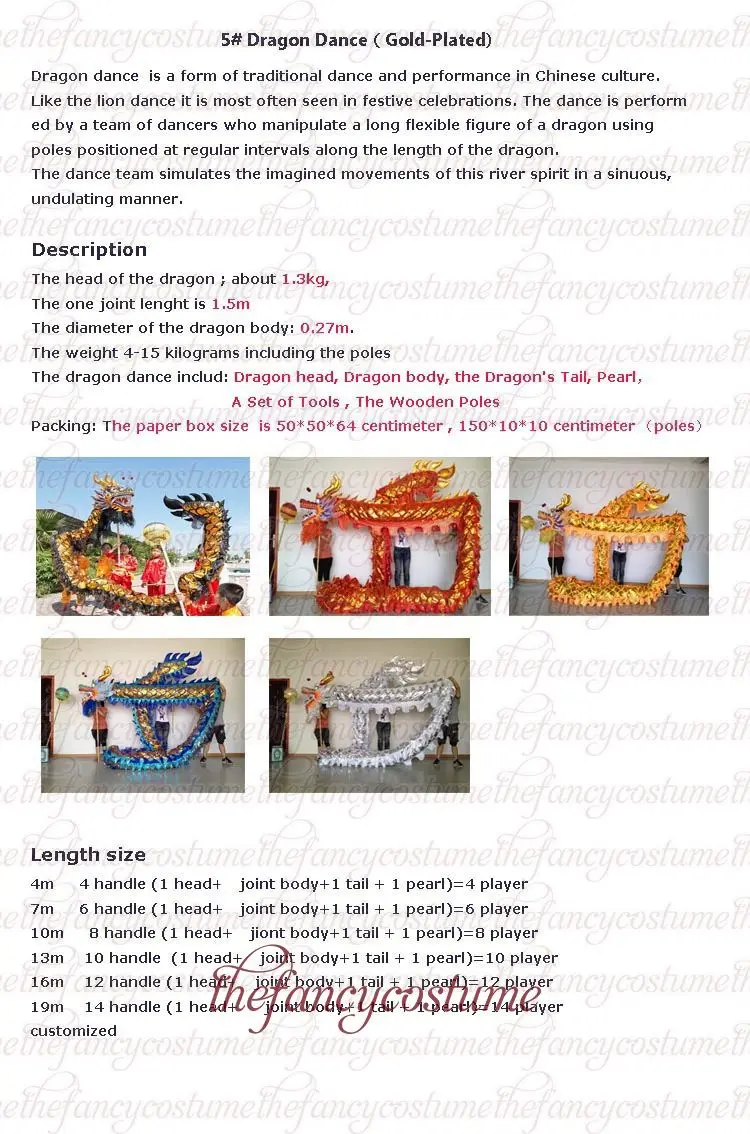 Использование: вечеринки, юбилеи, свадьбы и т. Д. Посылка включает в себя: Голова Дракона Тело дракона Хвост дракона Жемчуг дракона ( Новые виды ) Набор аксессуаров Палки (не входят в комплект) ( Если вам нужны столбы, пожалуйста, оставьте сообщение, мы отправим его вам, ноИмпортные пошлины, налоги и так далее для полюсов будут оплачены покупателем)