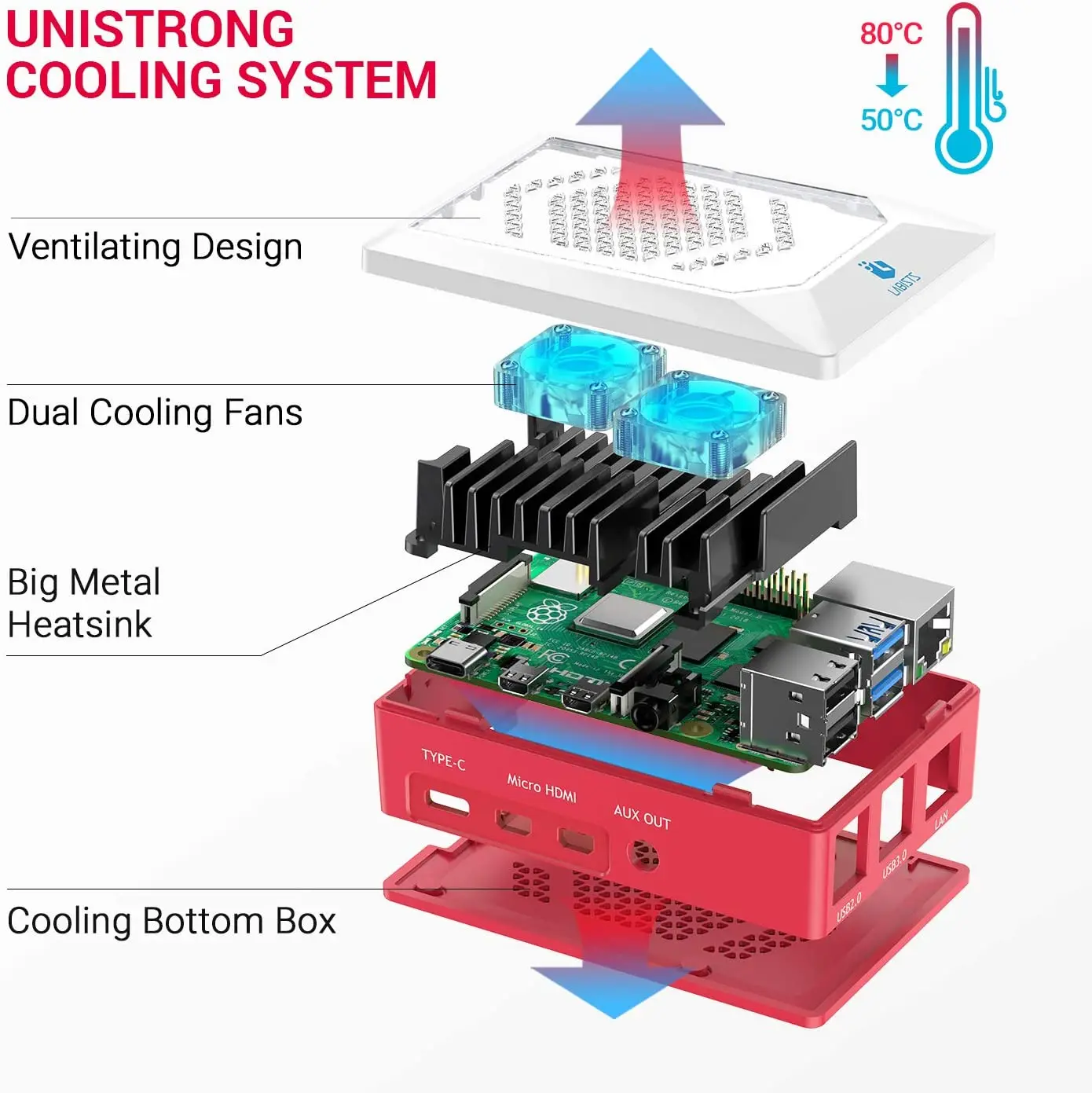 【Специально Разработанный Премиум Raspberry Pi 4 Case】 предлагает вашему Raspberry pi хорошую защиту. Легкий доступ к модулю камеры raspberry pi, питанию, аудио/видео, USB, LAN, micro sd-карте и разъему HDMI, достаточно места для вентилятора и зазора для рассеивания тепла.