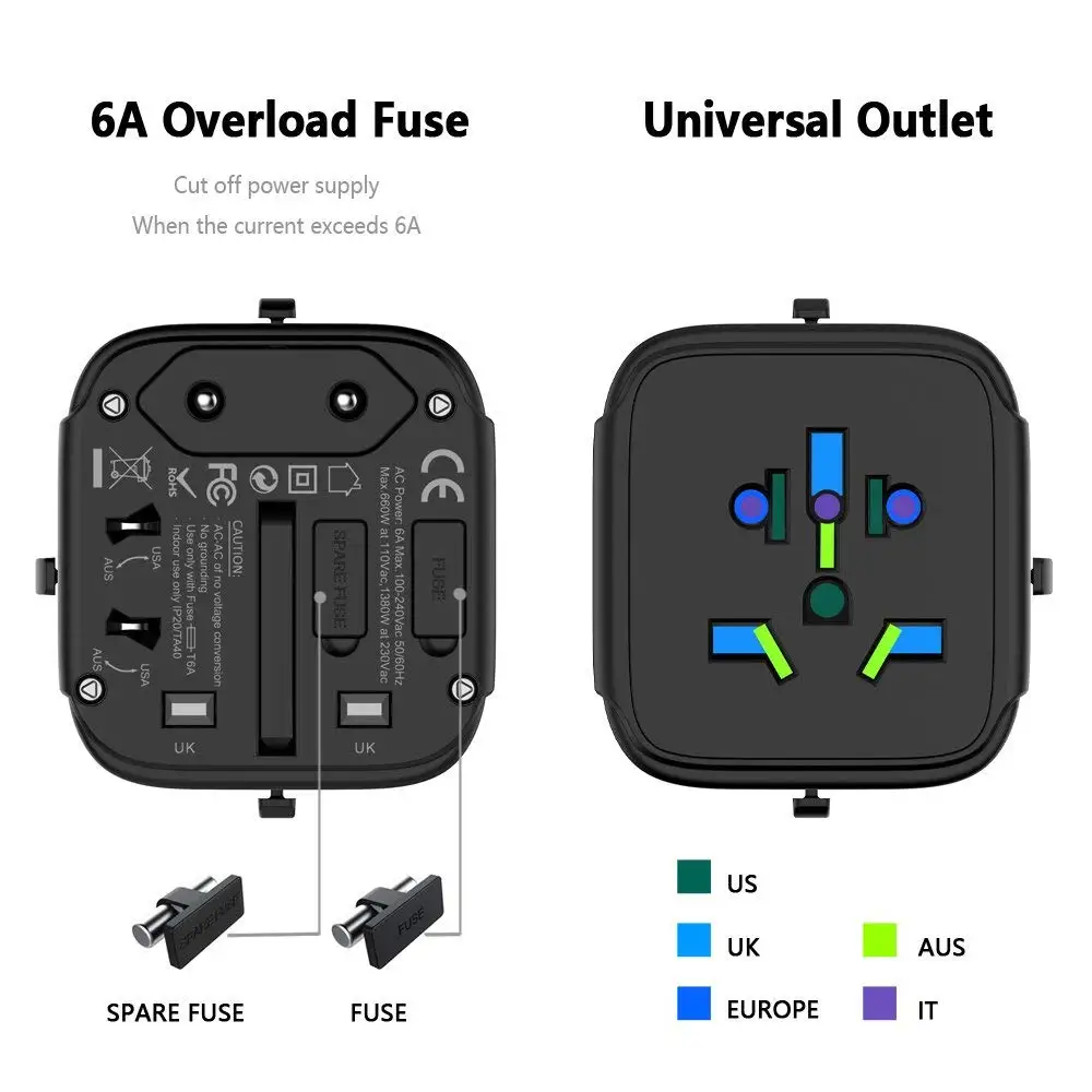 TESSAN Универсальное зарядное устройство с usb-адаптером для путешествий с 3 usb-портами, штепсельная Вилка для путешествий по всему миру с разъемом США, Великобритании, ЕС, Австралии, все в одном, портативная розетка